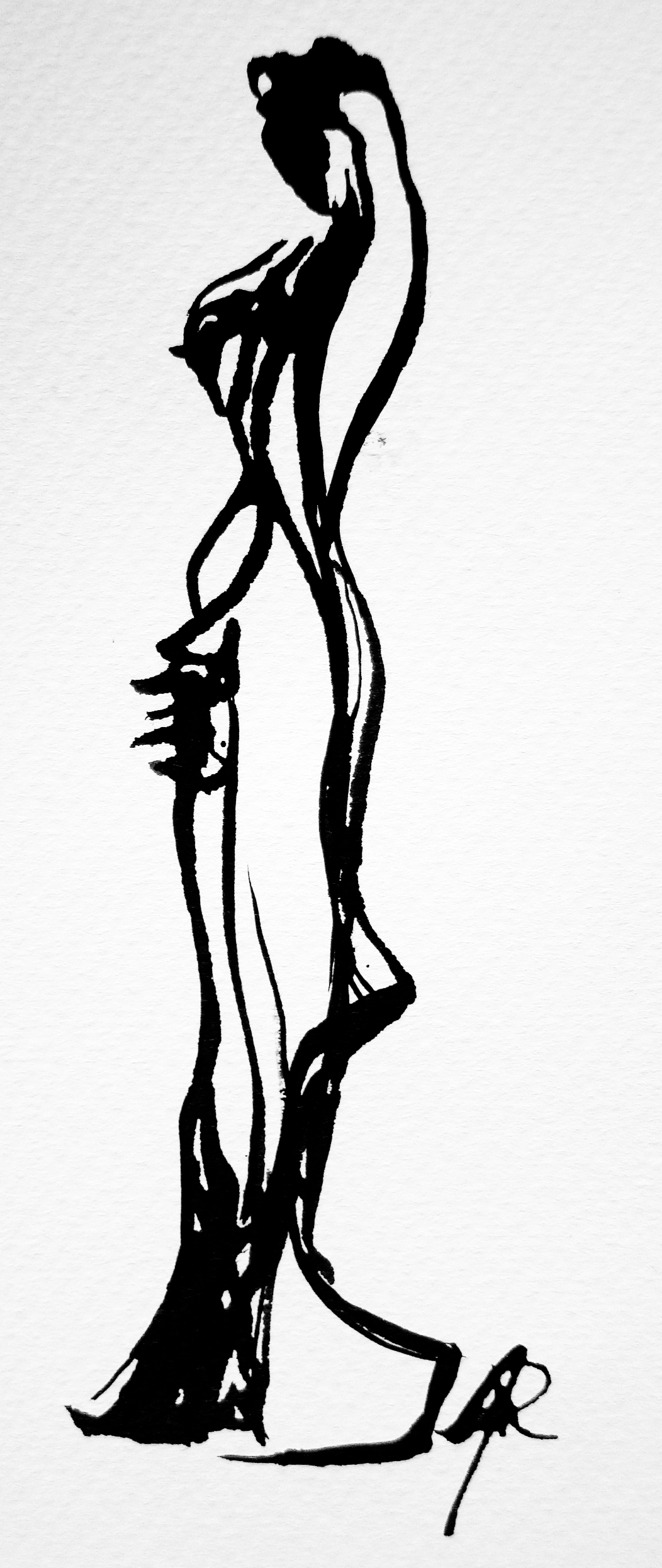 Inkt Rietpen Penseel Abstraherend Vrouw Schoonheid Trots Tekening Zwart-wit