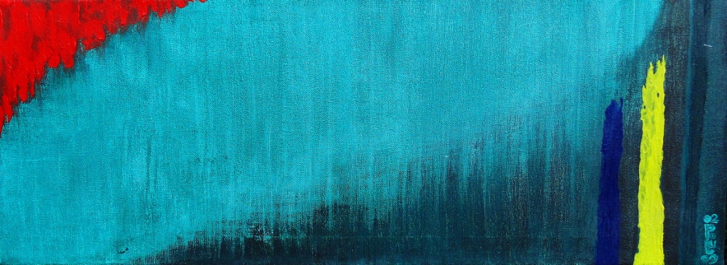Doek wat je in vele horizontale, vertikale, diagonale, linksrechts- en rechts links-posities met de andere 3 deeldoeken kunt combineren, waarbij je het rode vlak ook centraal kán positioneren. Alleen in combinatie met de andere 3 deeldoeken.