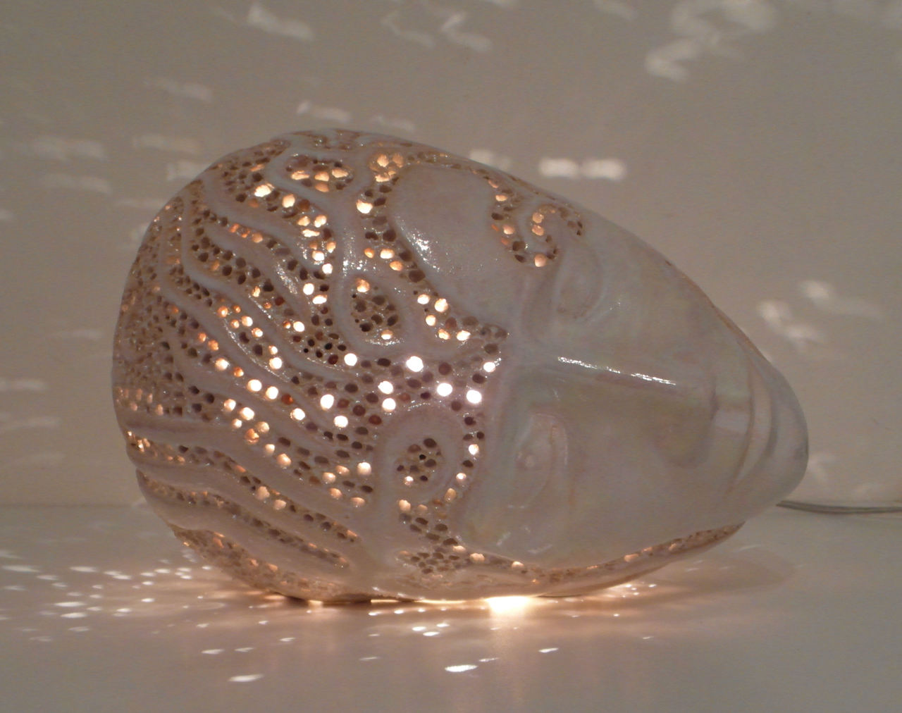 Wit Licht Gezicht Hoofd Lamp Keramiek Open Tekens Parelmoer Kerst Gaten Led Openheid Duizeligheid