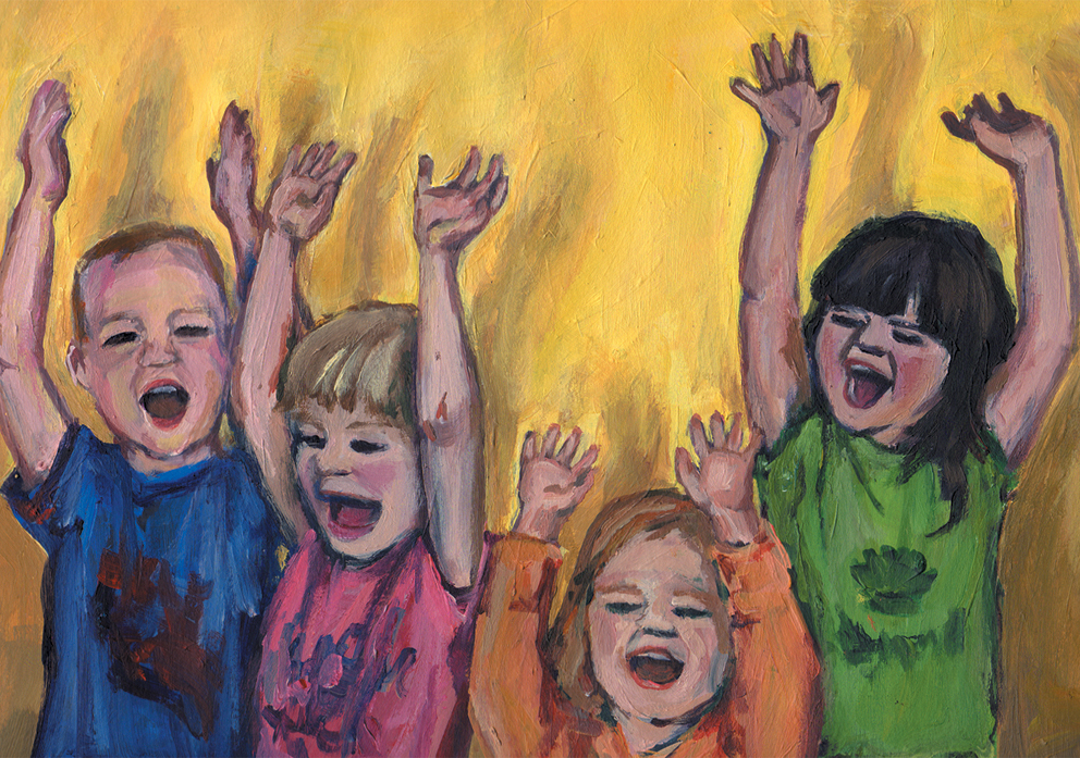 Figuratief Acryl Feest Kinderen Illustratie Verjaardag Vriendjes Illustratief Juichen Hoera