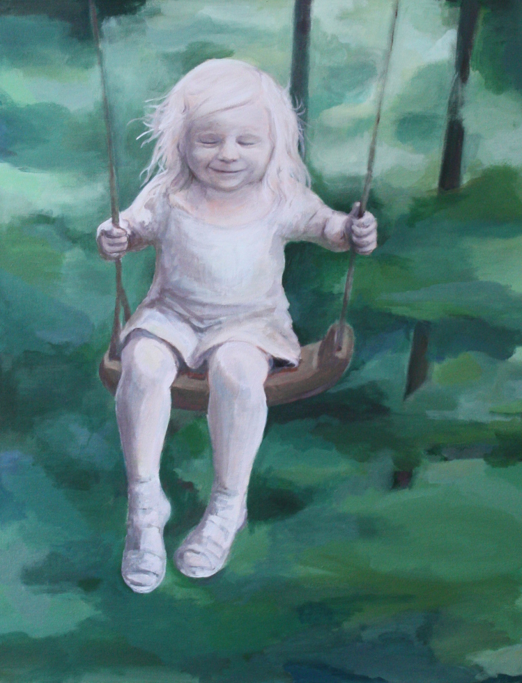 Wit Meisje Figuratief Acryl Groen Herinnering Spelen Jeugd Schommel Voorbij