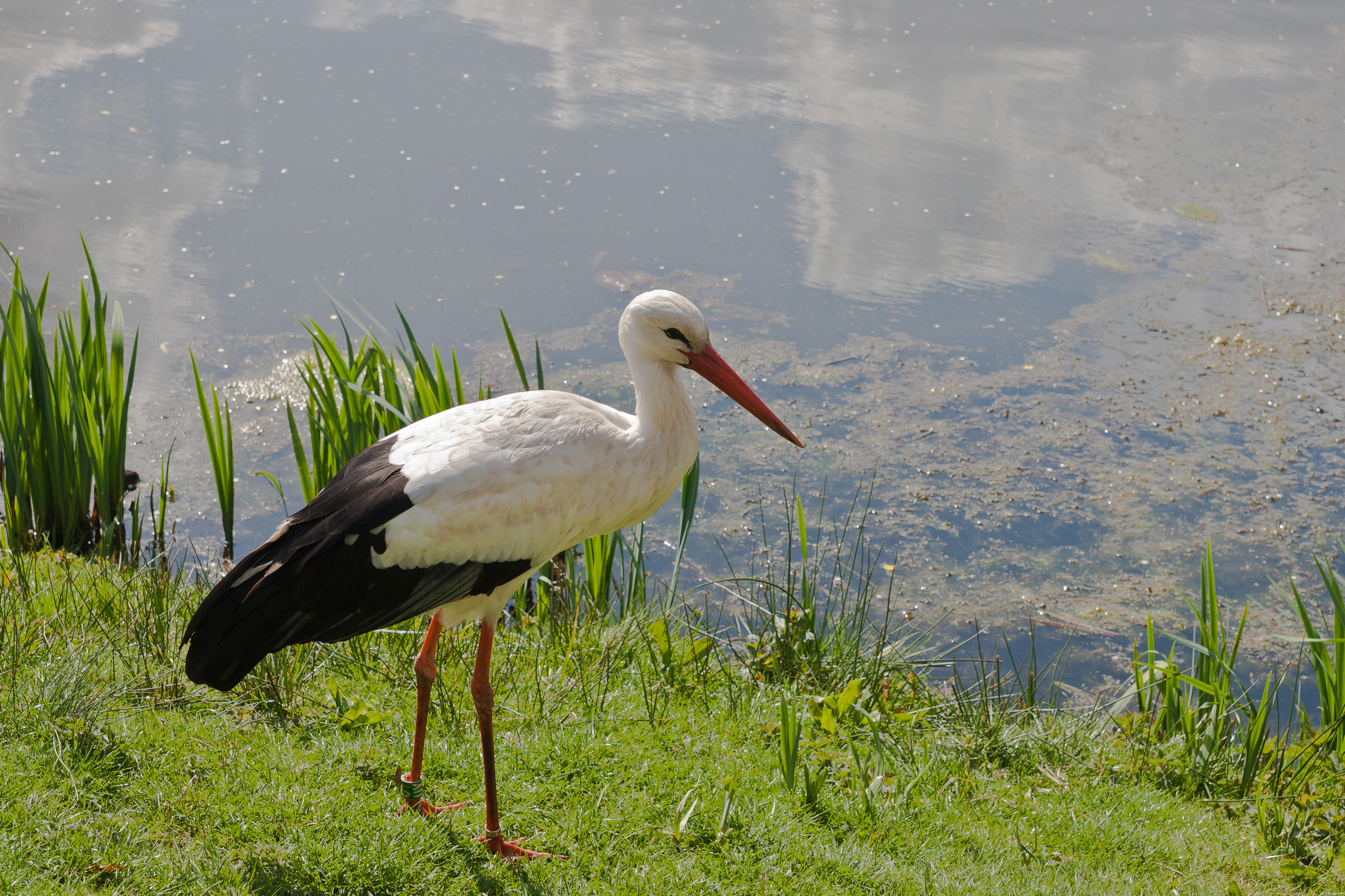 Ooievaar in kasteeltuin van Arcen