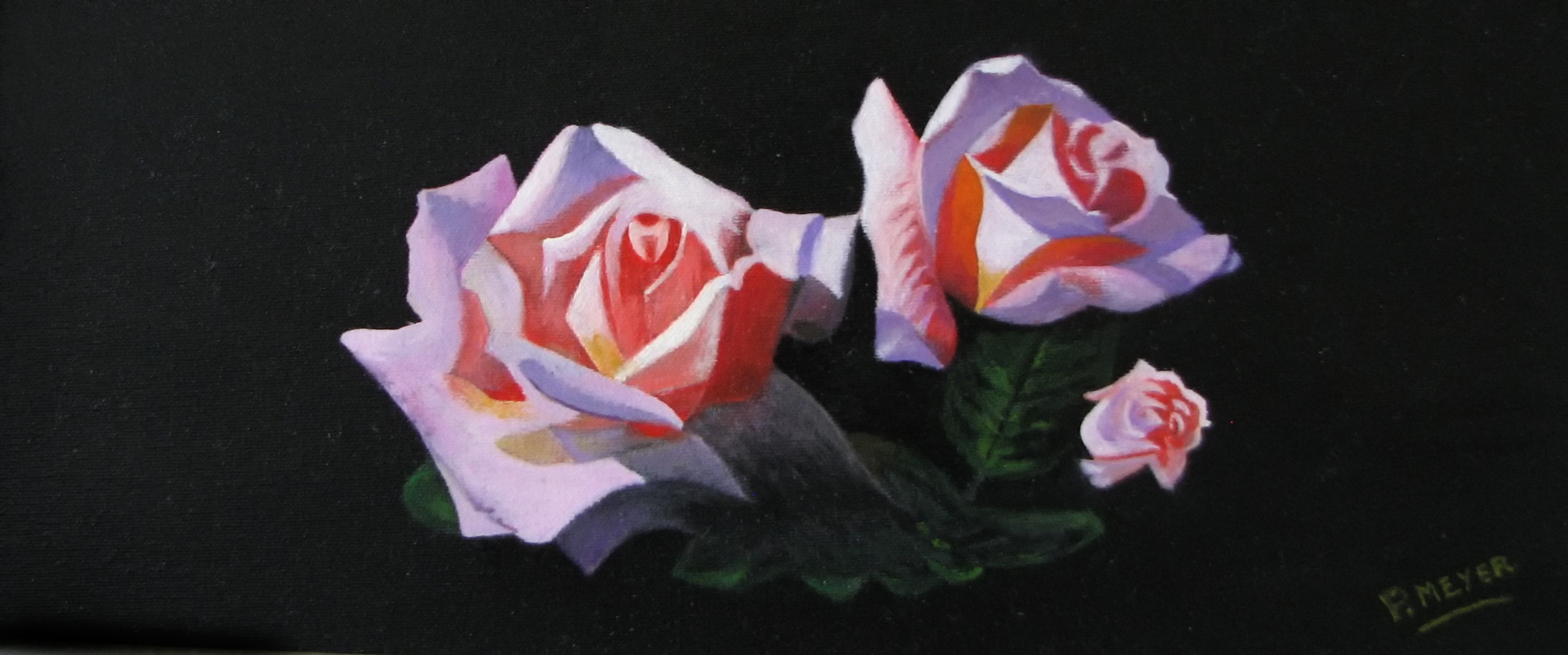 Drie rozen op een klein doek