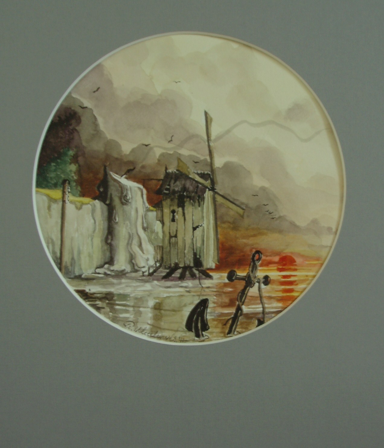 Romantiek Zonsondergang Papier Aquarel Lucht Kaarsen Realisme Fantasie Anker Molens Drijgende