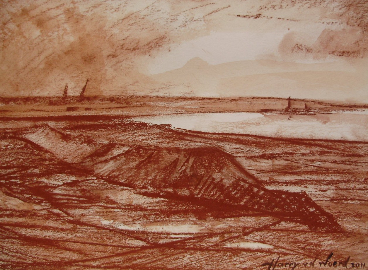 Dit is een gewassen tekening gemaakt in rood krijt.