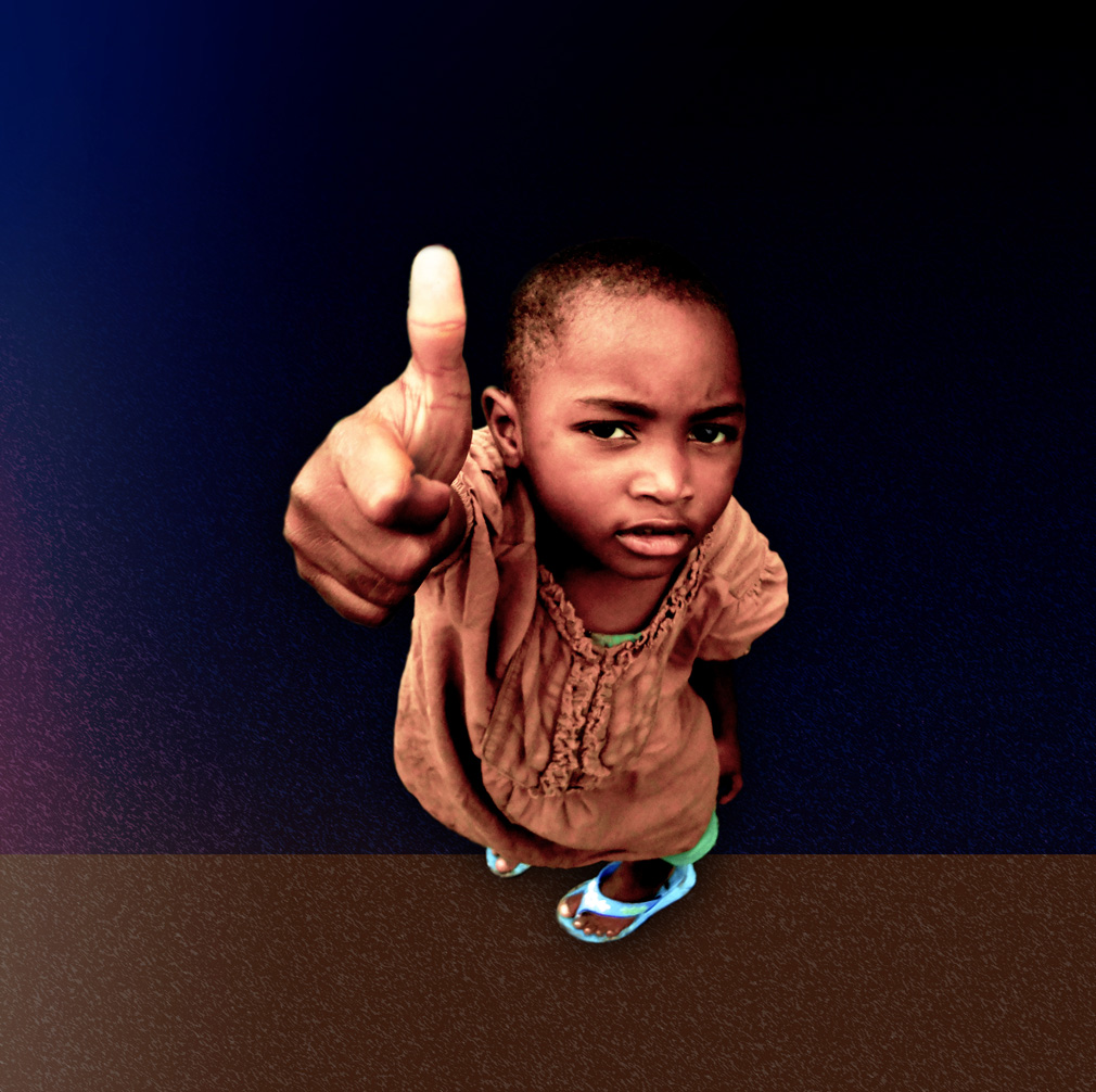 Meisje Zwart Kind Klein Bruin Ogen Donker Duim Jurk Boos Kleuter Gebaar Aankijken