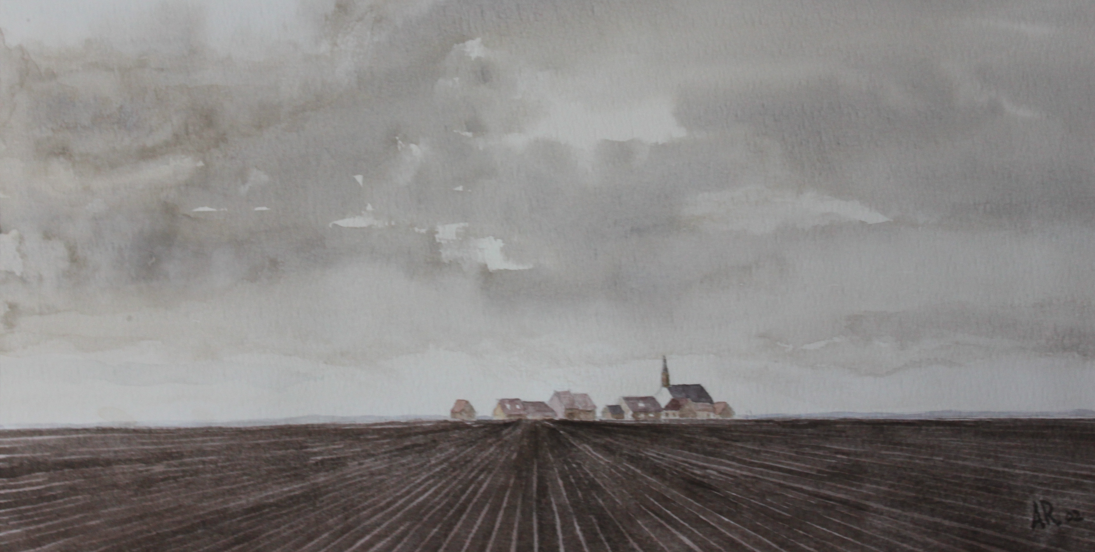 De vlakheid en eenzaamheid van het Noord Groningse land.