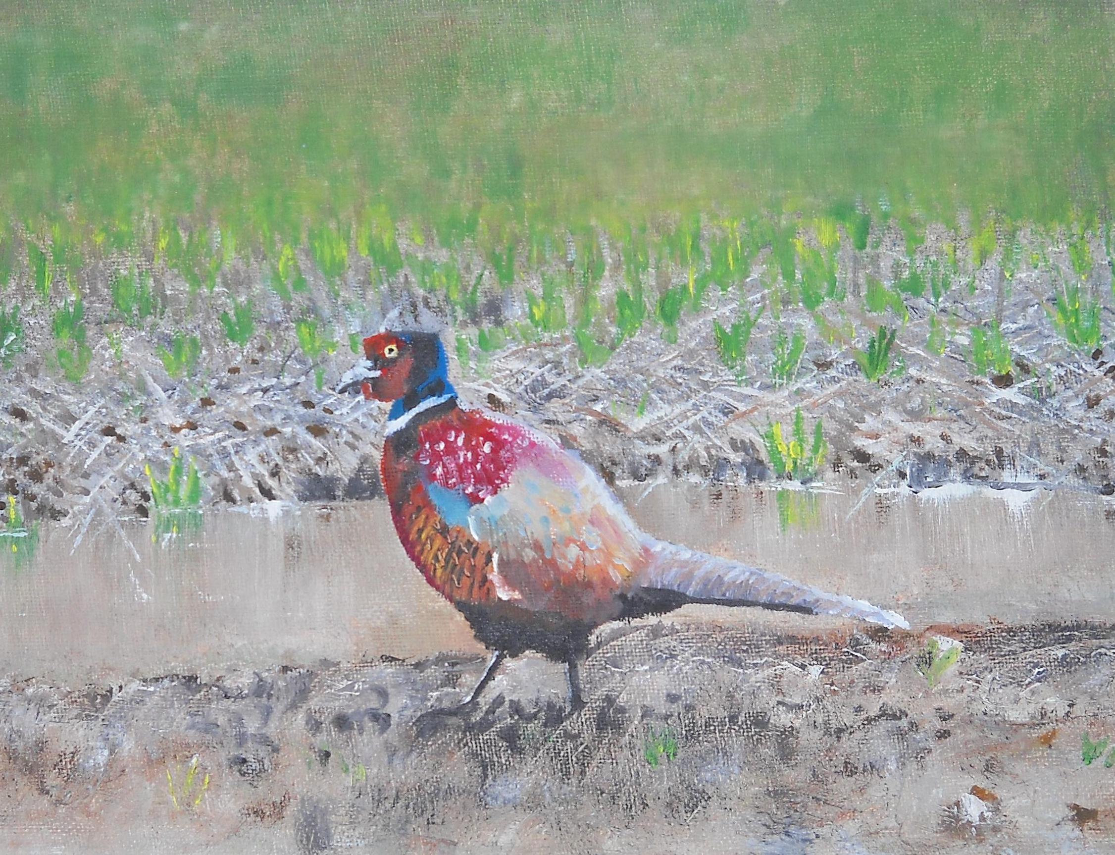 Landschap Vogel Realistisch Olieverf Kleur Veld Fazant