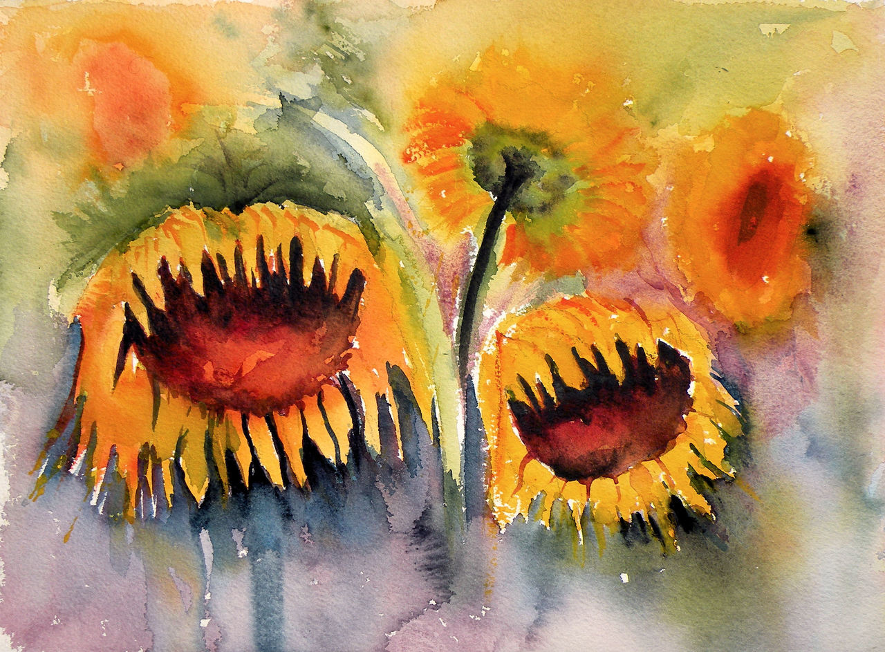 Wit Geel Zwart Yellow Groen Bruin Aquarel Green Stilleven Black White Brown Still Life Zonnebloem Sunflower Watercolour