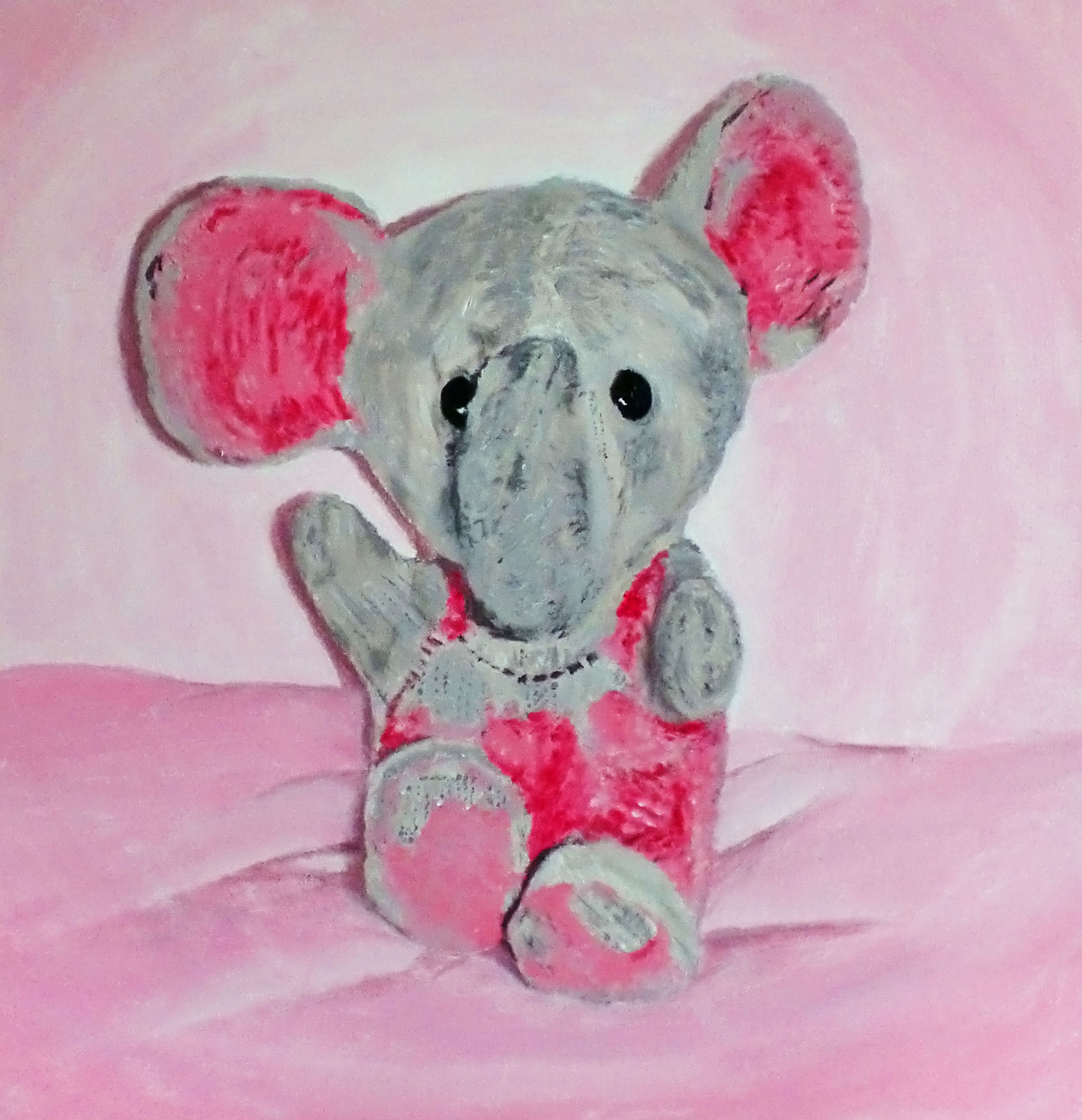 Portret Olifant Elephant Toy Speelgoed Knuffel Realistisch Acryl Acryllics Painting Schilderij Paint Verf Dieren Dier Animal Animals