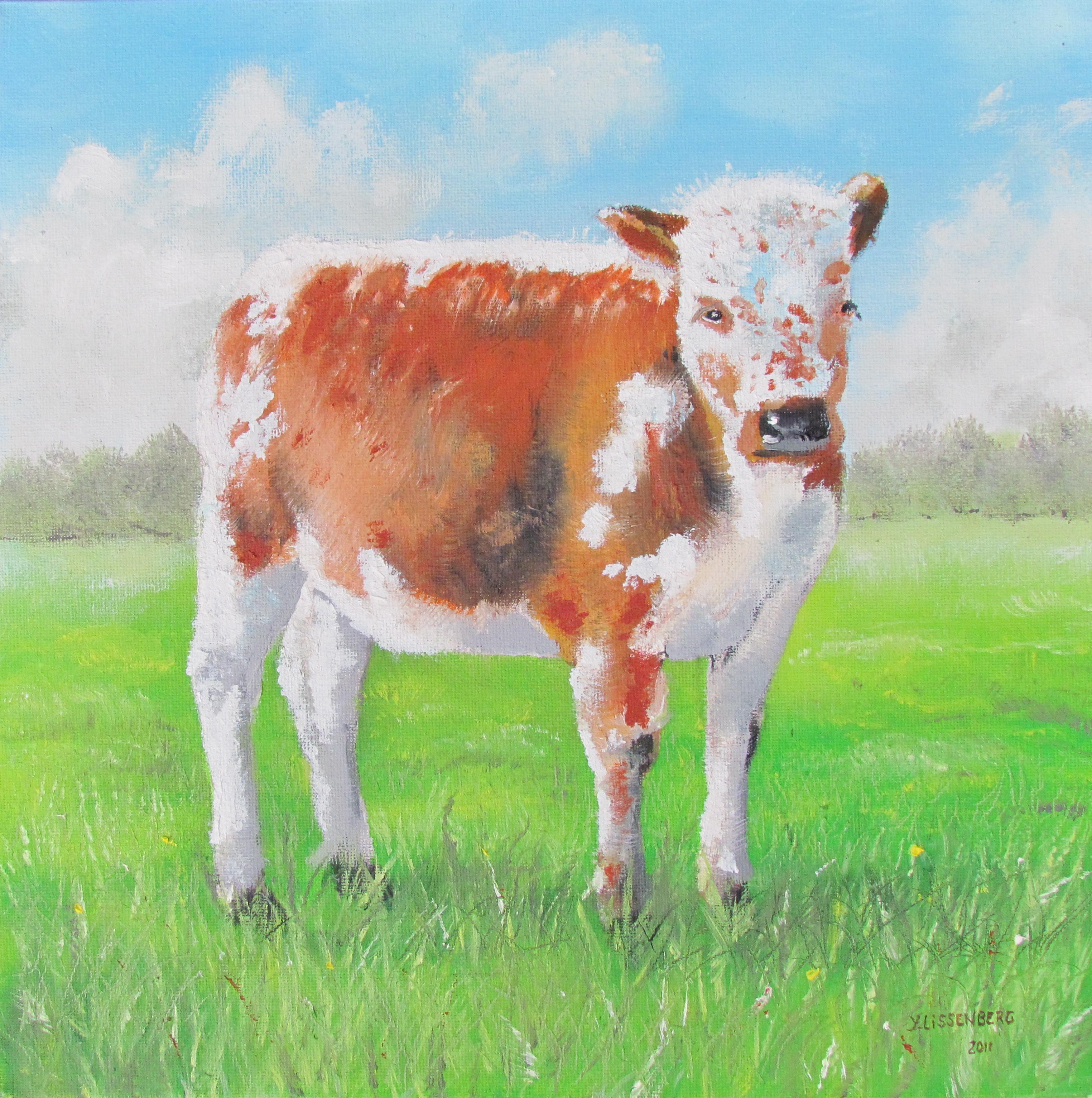 Dit rode witrug-kalf is zoals de naam van het schilderij al doet vermoeden van Roelina. Geschilderd in opdracht voor de familie Doeser.