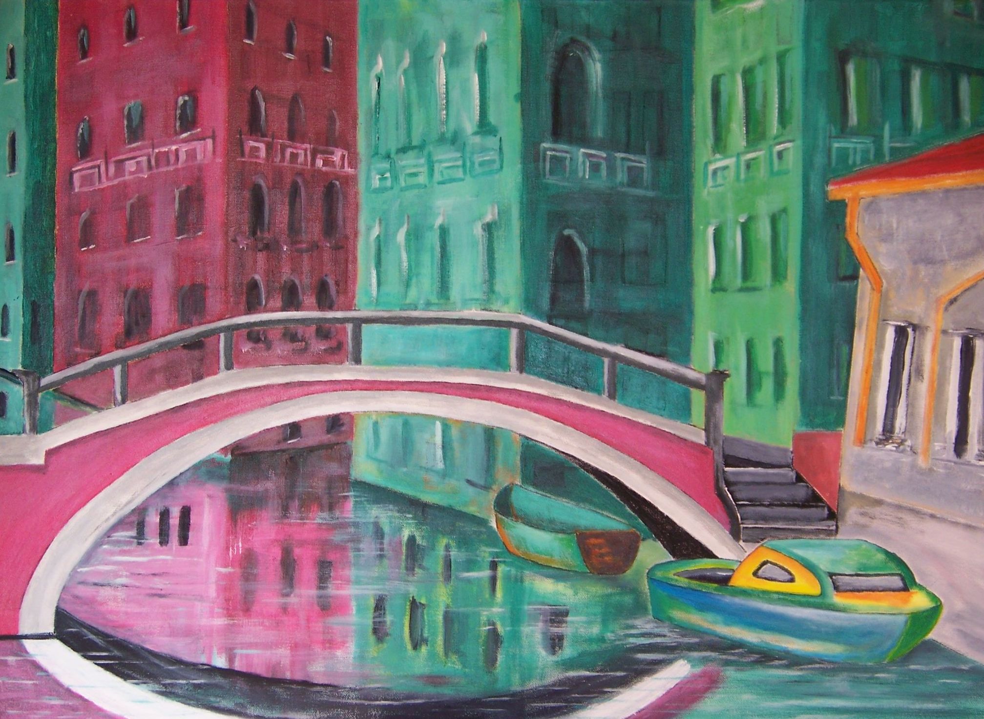 Colorpainting met acryl, olieverf en aquarel schilderen in kleurige modernistisch en minimalistisch stijl