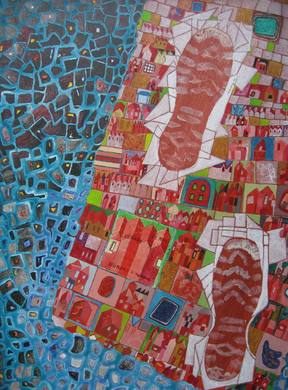 'Beweging, herhaling, verstilling', daarin zou je mijn werk kunnen vangen. Een tijdlang wordt een thema (vissen, huizen, bomen, dansende schoenen en voetafdrukken en het onderwerp: "kwetsbaar: de mens") uitgediept, weer losgelaten om vervolgens in een nieuwe verwerking tevoorschijn te komen. Altijd speelt de paradox van alleen te zijn en in communiteit. Eenheid van tegenstellingen, daar gaat het blijkbaar om. Mijn werk toont een vloeiende synthese tussen figuratie en abstractie. Ik bevind me meestal in het grensgebied van beide. Vandaar mijn beschrijving: VRIJE FIGURATIE.