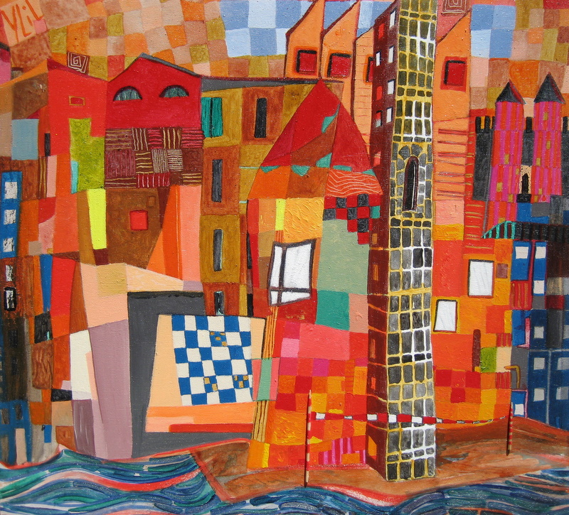 Acryl Huizen Rivier Vrijefiguratie