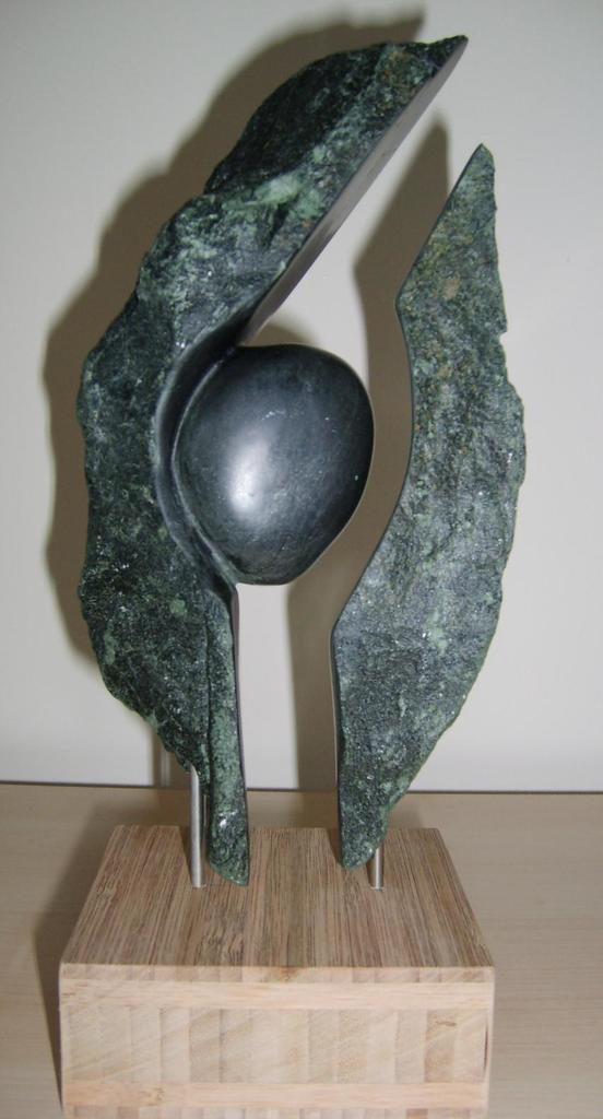 Middelpunt, uit Indiaas speksteen op houten sokkel (onbewerkt)