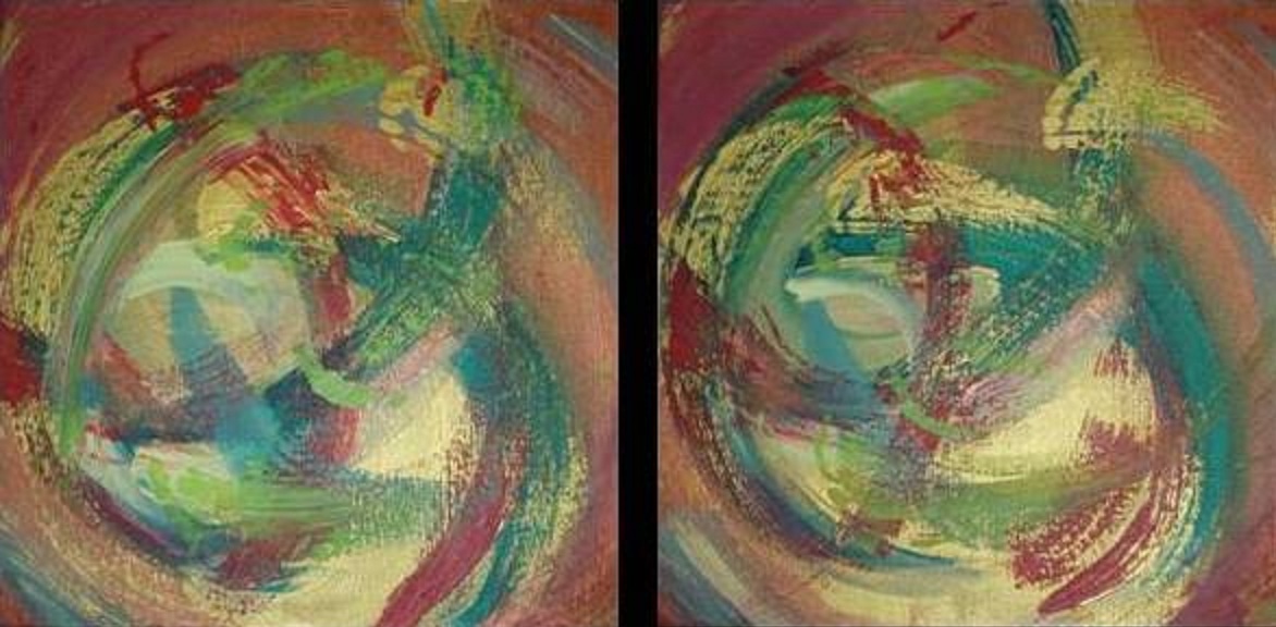 Dit 2-luik dankt zijn naam aan het feit dat welke zijde je ook kiest als zichtzijde dit een spannende combinatie geeft. Door steeds een kwart slag te draaien kun je 4 variaties krijgen in het synchroon beeld. Door de beide schilderijen a-synchroon te draaien kun je ongekend veel meer variaties maken. Door dit extra gegeven zijn deze 2 schilderijen extra spannend en geven door verandering van positie steeds weer een nieuw, levendig en verfrissend beeld in uw interieur. Wordt verkocht als set van 2.