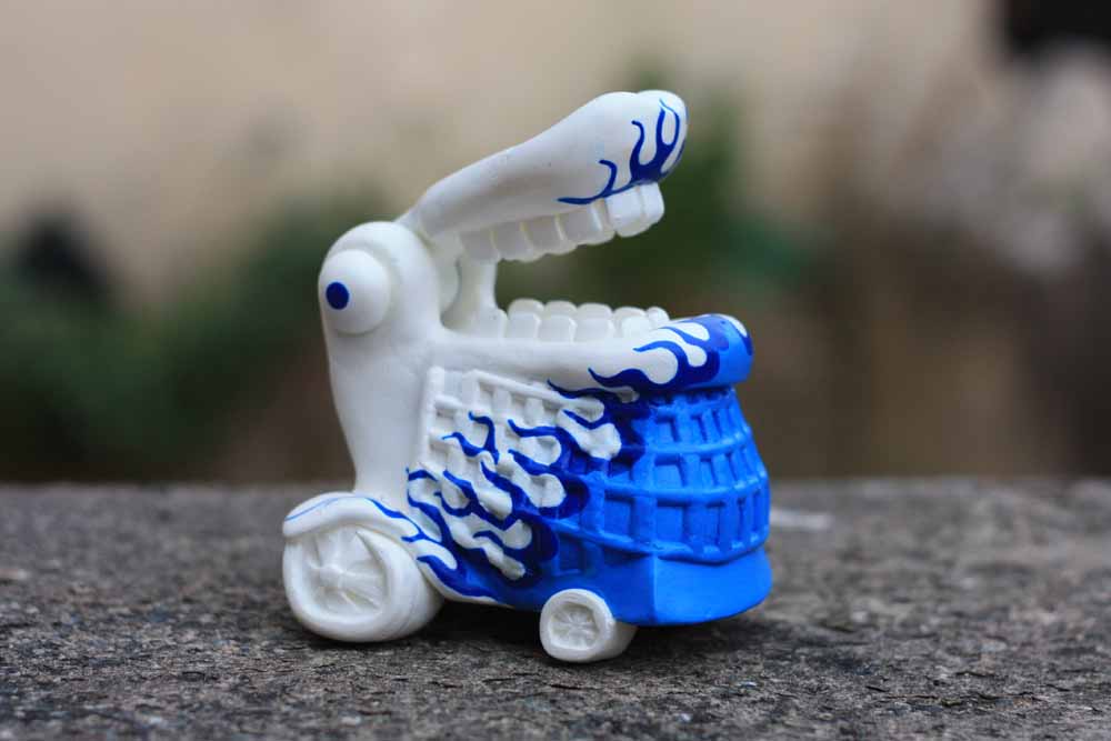 Dit is een kruising tussen een Hot Rod, een bek en een boodschappen karretje. Alles om het hersenloze consumeren uit te drukken. De Hot Rod staat voor het beeld waar wij ons aan spiegelen dat gecreeerd is door gestudeerde marketing deskundigen van commercielen bedrijven.