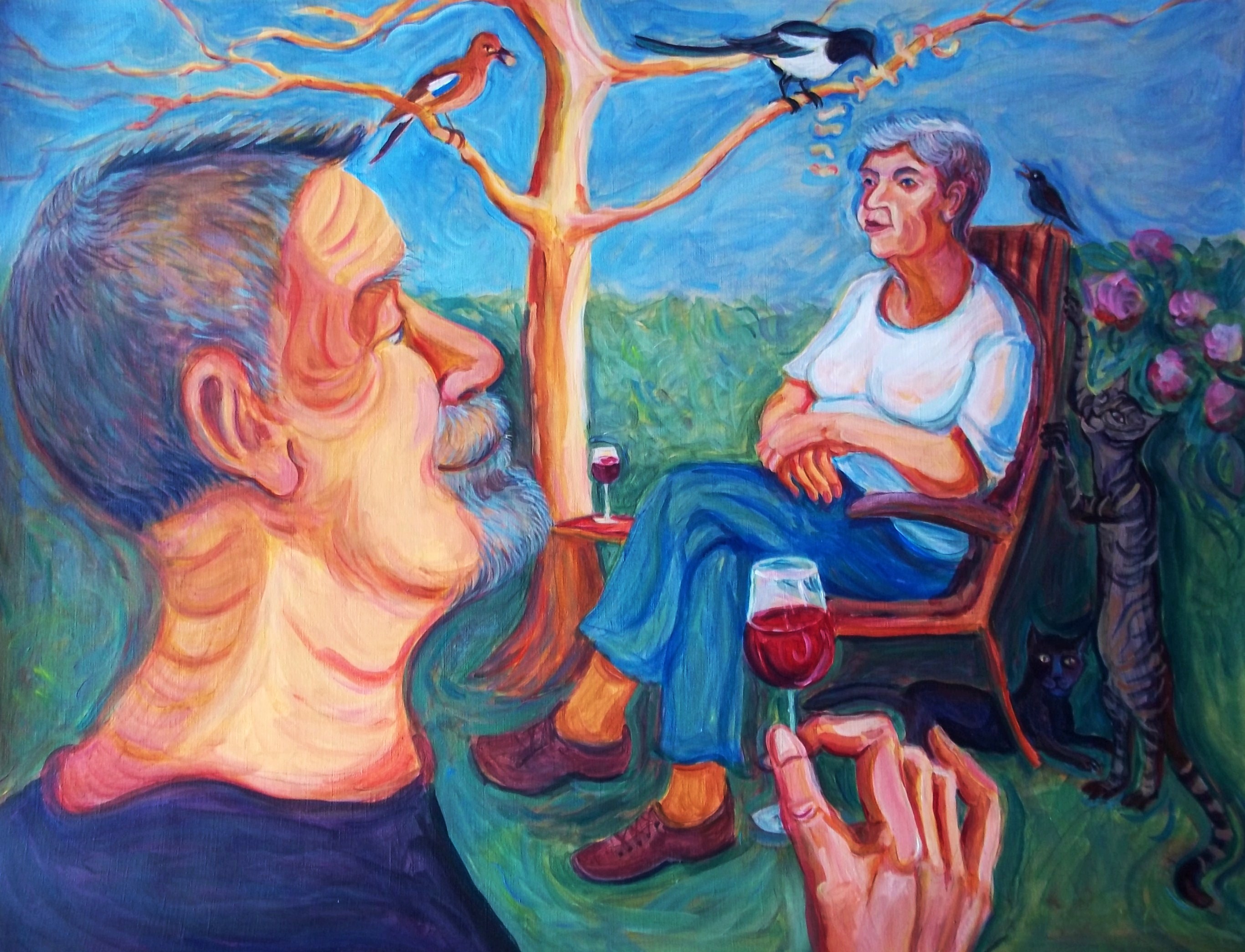 Tuin Wijn Vogels Katten Ekster Vlaamse Gaai Pa Ma Toost Heildronk Glasje