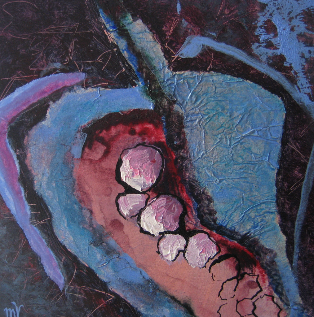 Mijn onderwerpen vind ik zowel in mijzelf als in mijn omgeving. Ik begin te werken vanuit de waarneming en laat deze dan langzamerhand steeds meer los.