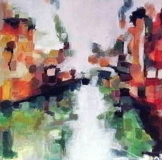 stads gezicht "Venetië " 60 x 60 acryl op doek. www.galeriebernheze.nl schilderen op deze locatie