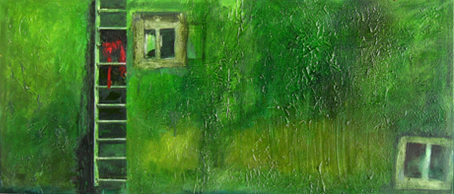 De op het eerste gezicht ‘oppervlakkige’ afbeeldingen in mijn werk zijn gekoppeld aan een geladen, emotionele inhoud: Ik gebruik het thema behuizing als metafoor: Wat is ons thuis? Ons lichaam, ons huis, onze stad? Onze ware identiteit gaat vaak schuil achter facades. Dat boeit me. Dat gegeven gebruik ik in mijn schilderijen. Persoonlijke ervaringen, stemmingen en gevoelens probeer ik te transformeren tot beelden.