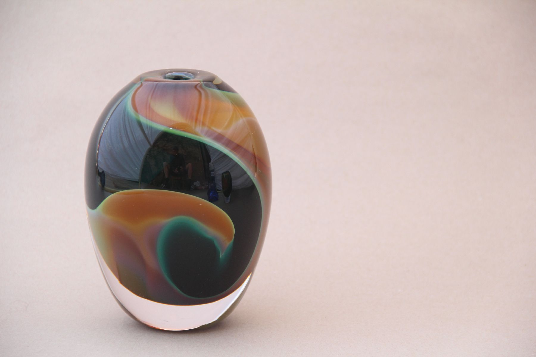 Er moest wat veranderen. Daarom organiseerde ik eind 2009 voor mijzelf een sabbatsverlof waarin kunst en ambacht centraal stonden. Ik vond meer balans en ben gaan glasblazen in diverse workshops in studios in Leerdam, Amsterdam, Lommel (B) en Novy Bor (CZ). Glasblazen is een zoektocht geworden. Glas is zo’n mooi materiaal met oneindige verrassende mogelijkheden, dat het elke keer weer een uitdaging is om spelend met vorm en kleur een mooi werkstuk te blazen.