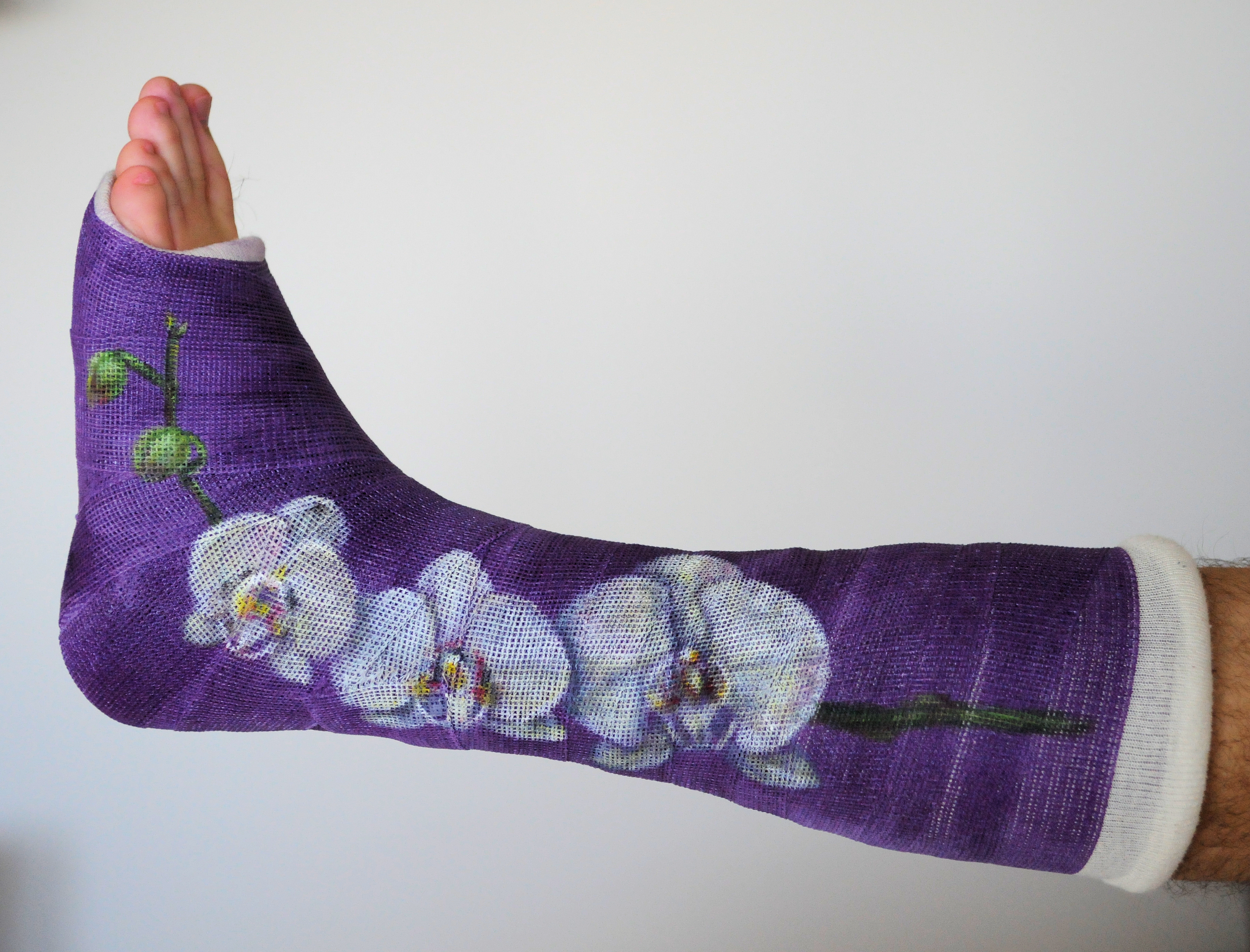 Een orchidee geschilderd met acrylverf op gips.