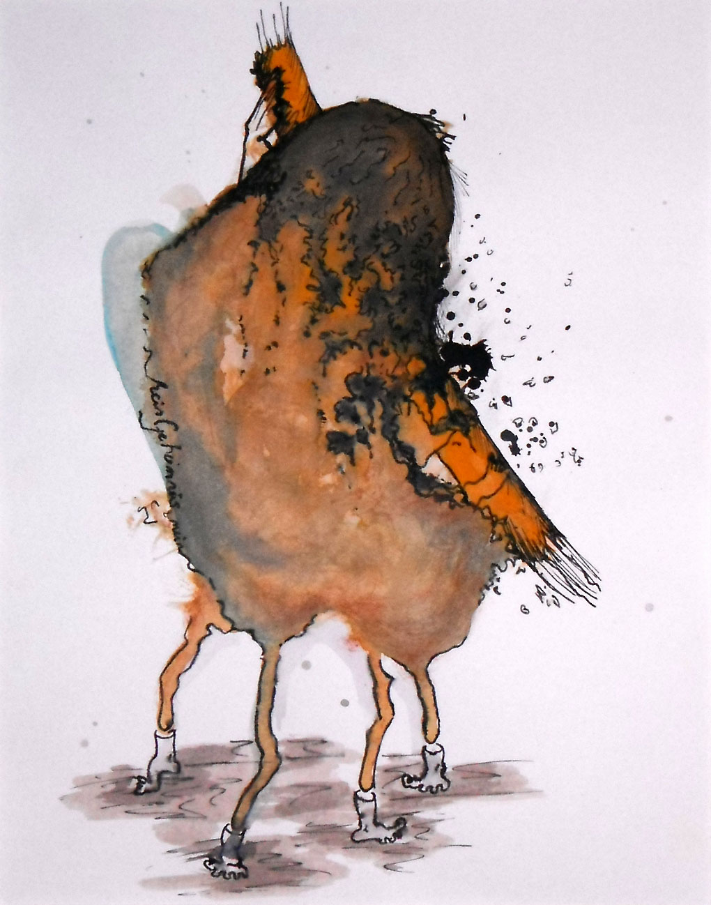 Associatiewerk met waterverf met inkt. In passepartout.