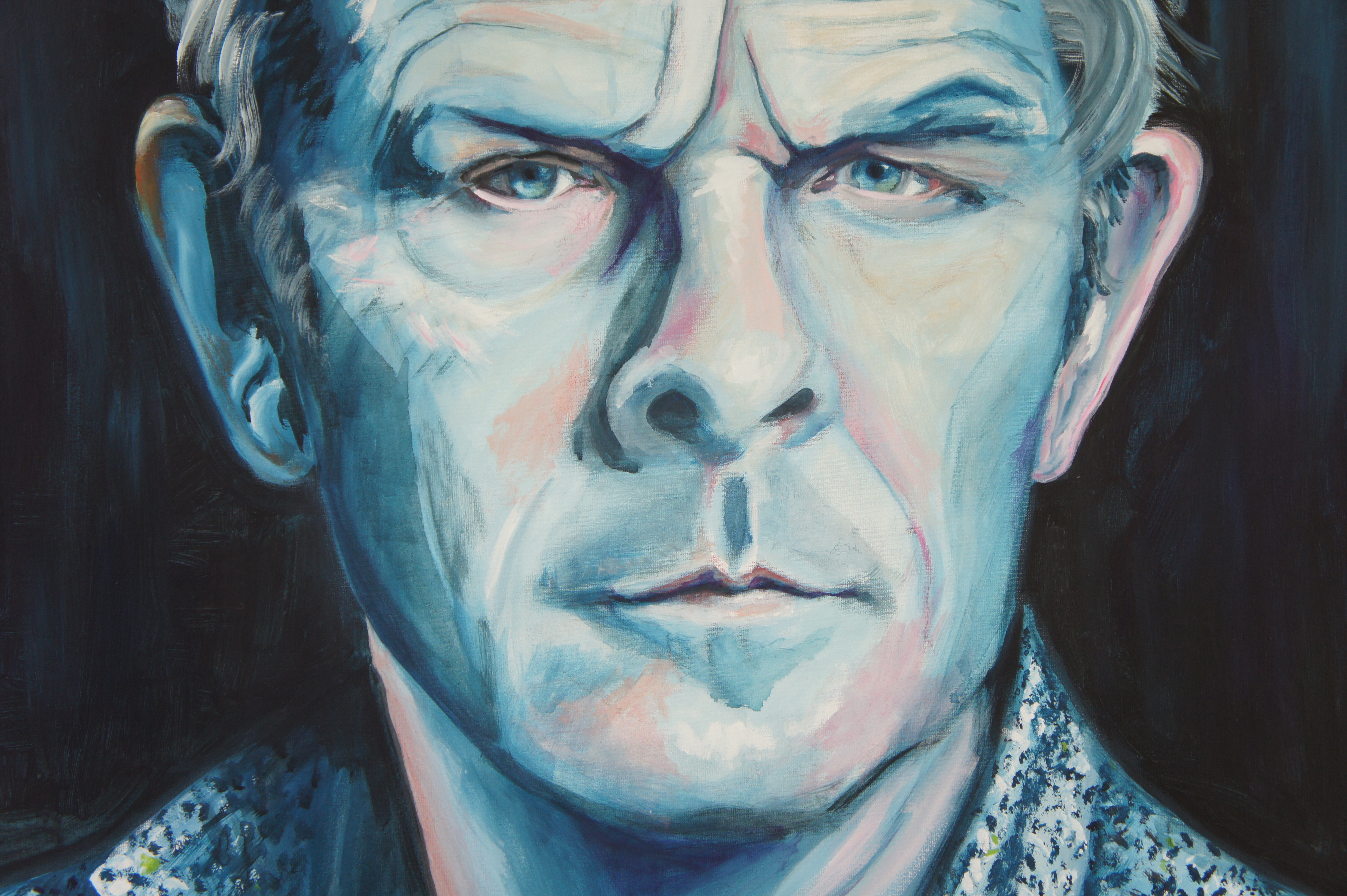Blauw Acryl Portret Van Kunstenaar "alex Warmerdam"