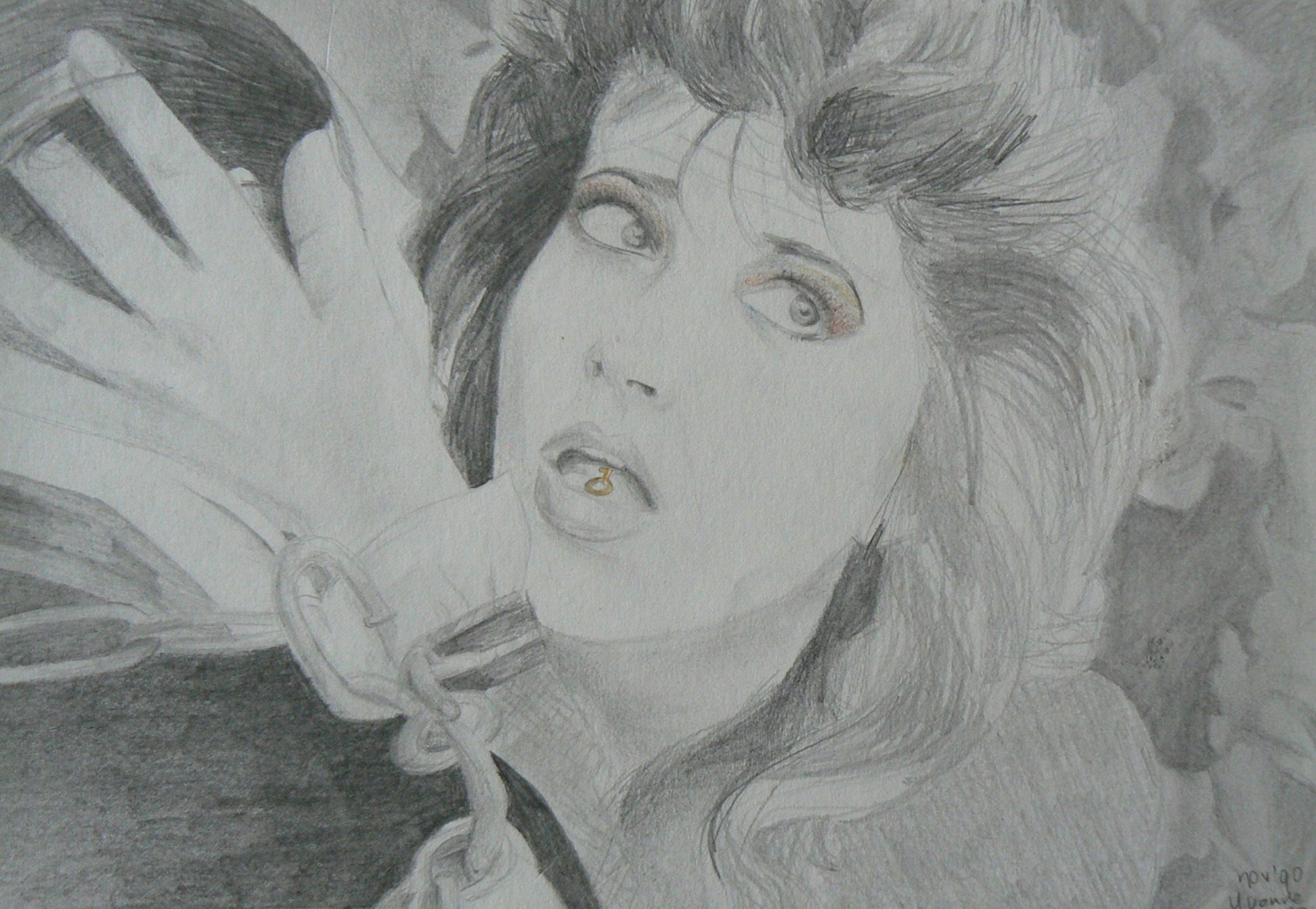 Yvonne (1970), Den Bosch, tekent portretten van foto. Zwart-wit, aquarelpotlood, realistisch of met extra.