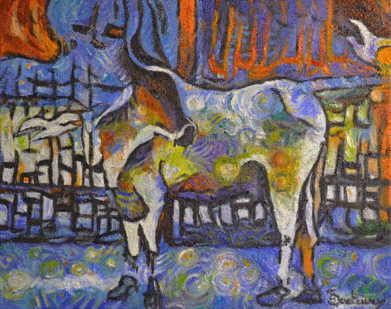 Greta Soetewey schildert haar impressie. Vooral dieren en mensen met hun tradities staan centraal op de foto's waarop ze haar schilderwerken baseert.