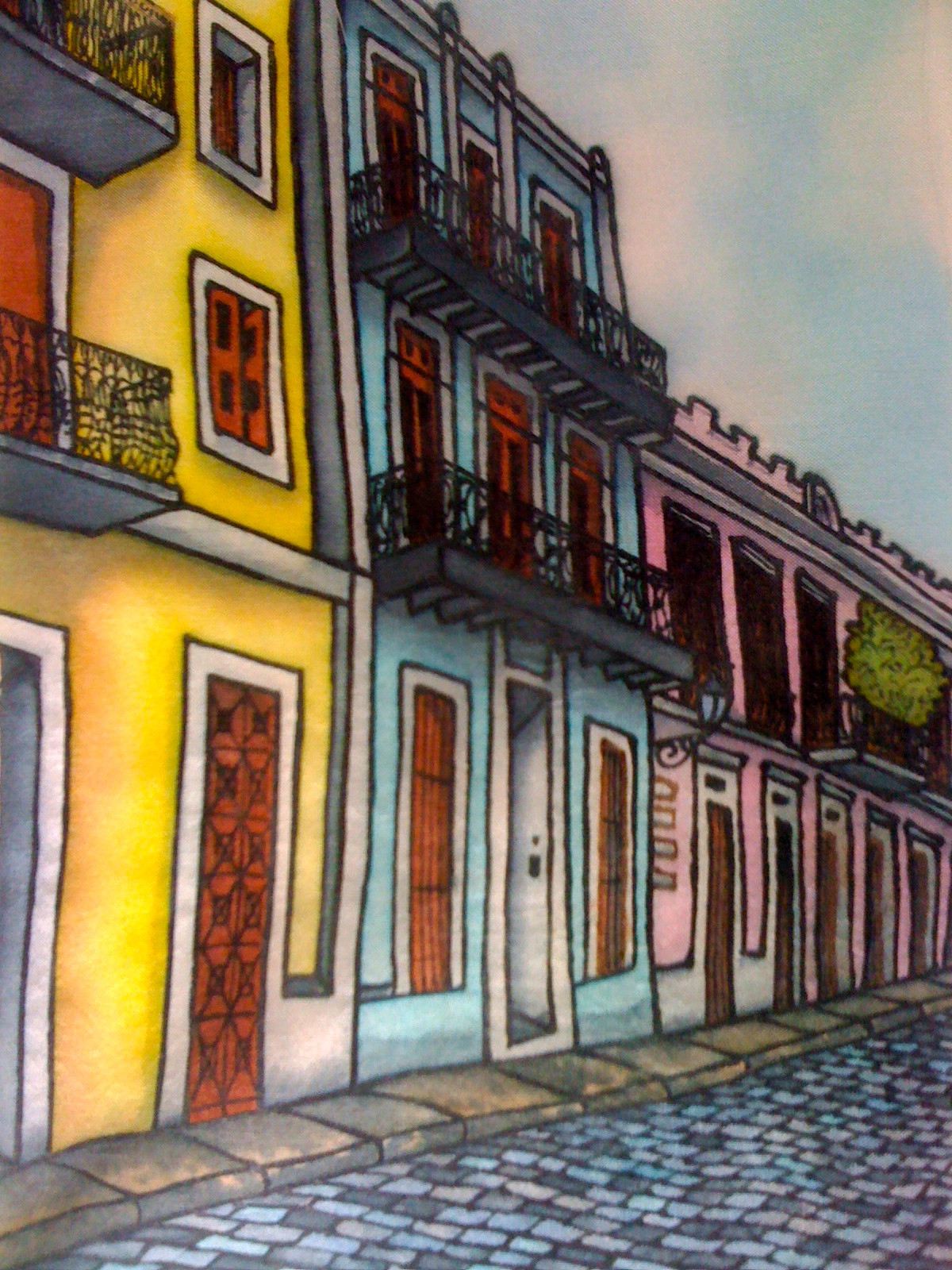 Stadsgezict met oud huizen (coloniale spaanse stijl) ,San Juan Puerto Rico. Gallery Arte y Mascaras, San Juan, Puerto Rico. Niet Te Koop