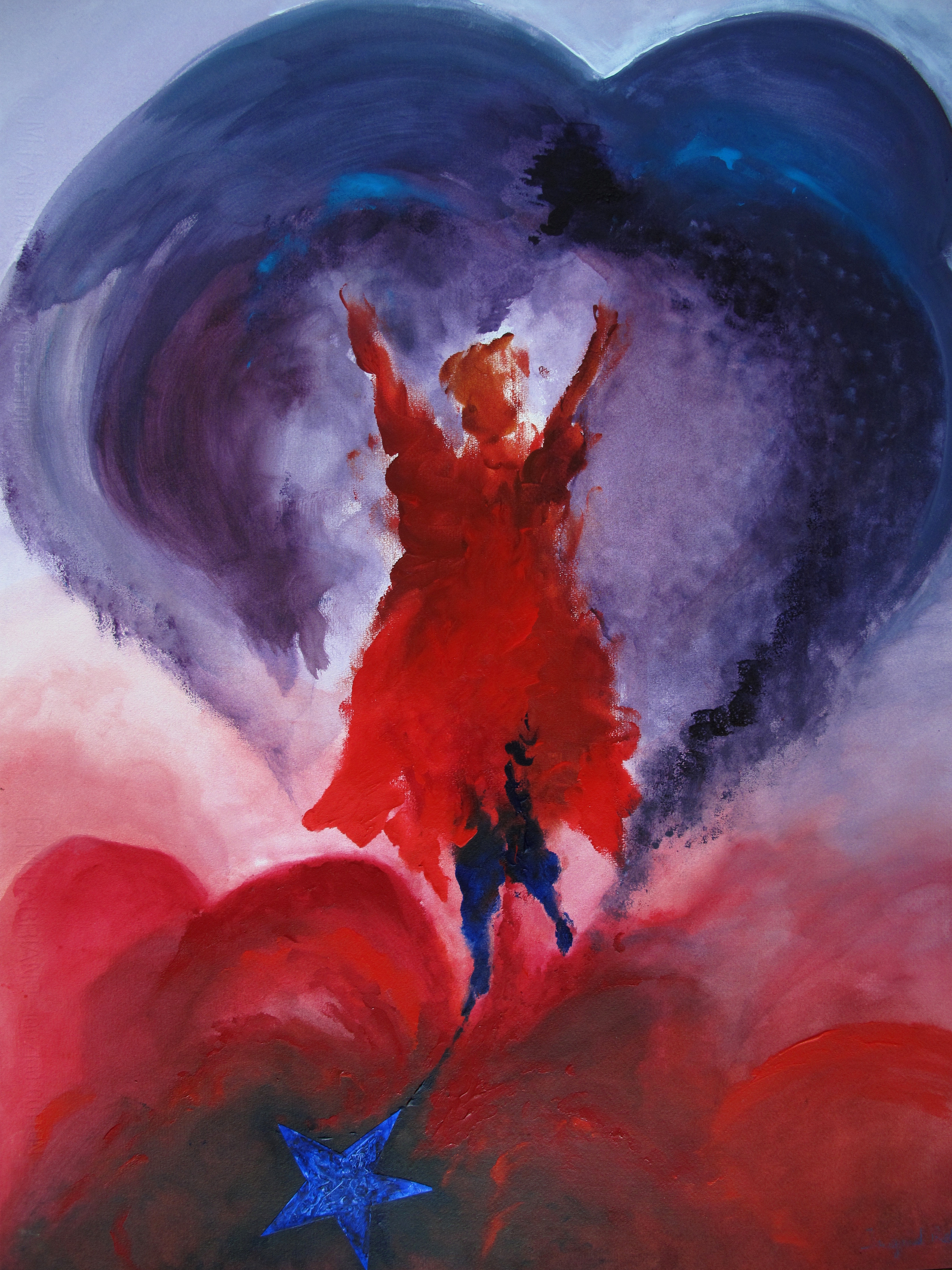 Bezield en bezielend, zó tracht ik te tekenen en te schilderen. Elk werk ontstaat vàn binnenuit, uit een inwendig voelen welke kleur, expressie en beweging uitwendig vorm wil krijgen. Ik noem het ‘mijn weg in overgave’… speelse overgave aan iets… een kracht, een Bron van leven die mezelf overstijgt. Niet IK schilder, maar het Leven schildert door mij en dat is iets ongelooflijk wonderlijks om te ervaren en met anderen te mogen delen.