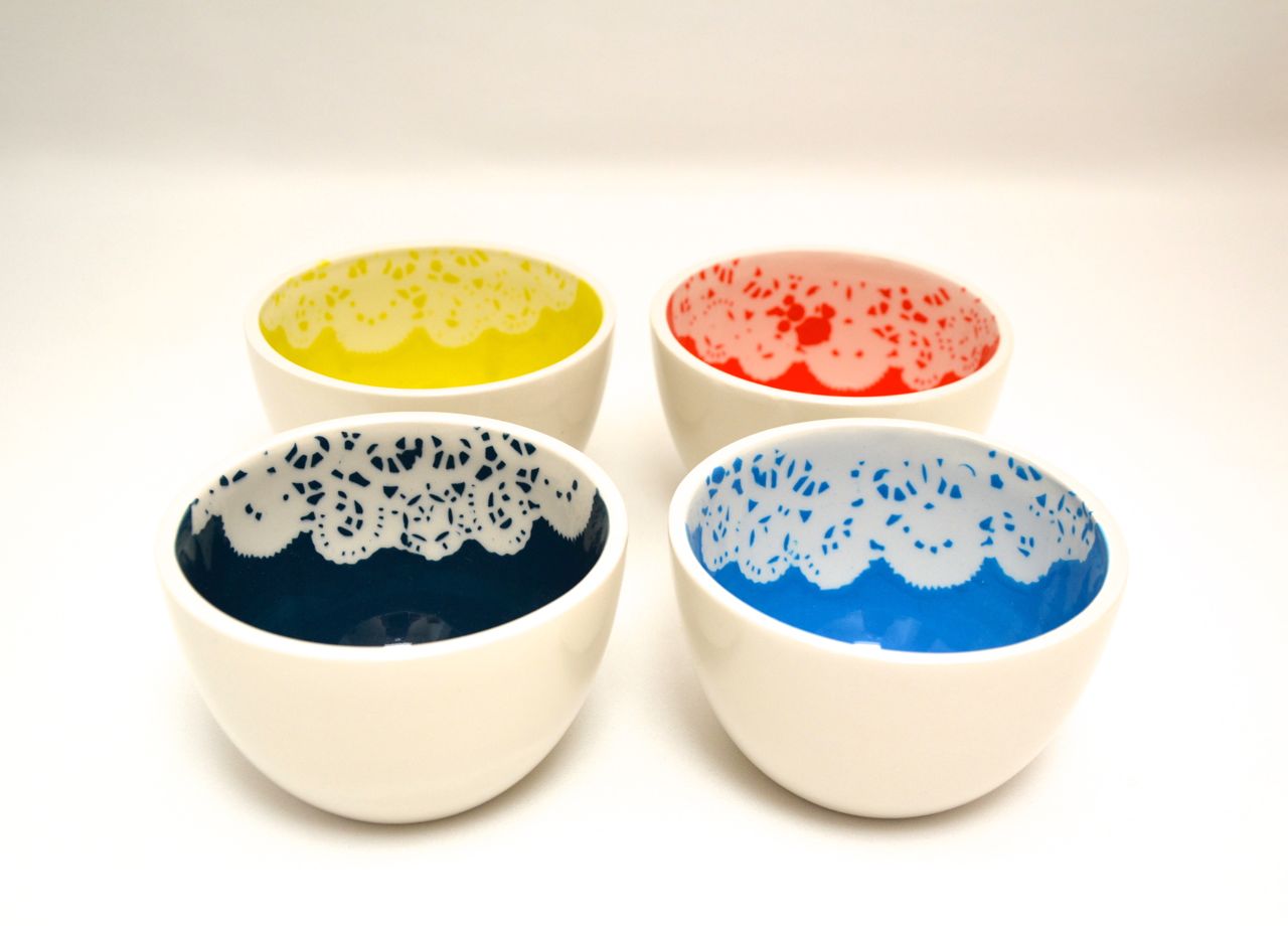 Rood Oranje Geel Zwart Blauw Paars Groen Bruin Lichtblauw Kom Schaaltje Keramiek Lichtgroen Donkerblauw Glazuur Steengoed Keramisch Aardewerk Geglazuurd Kommetje Petrol Gebruiksgoed Kant Kantpatroon Kantje