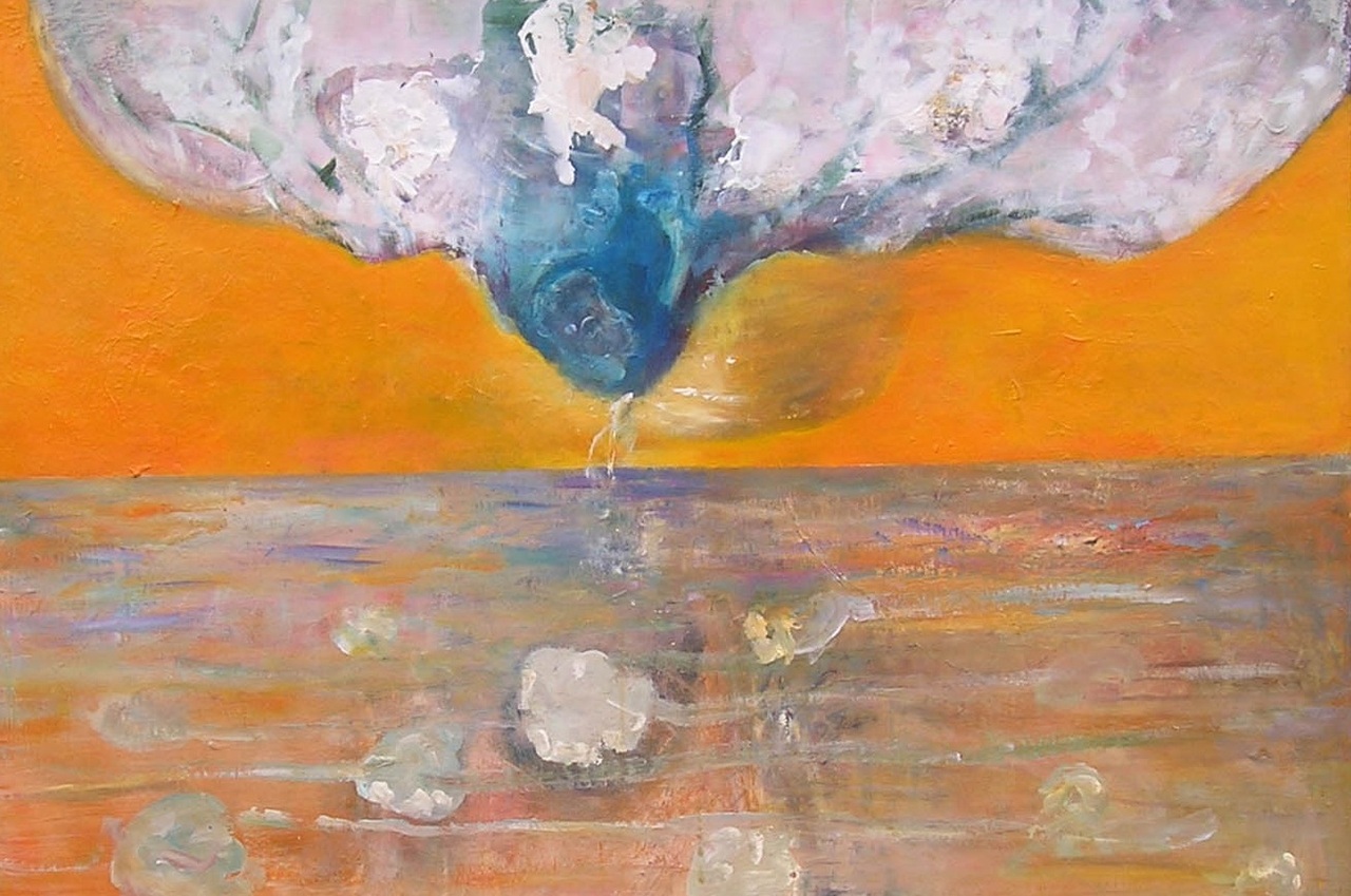 Wit Zee Oranje Blauw Bloemen Abstraherend Tak Bloesem Horizon