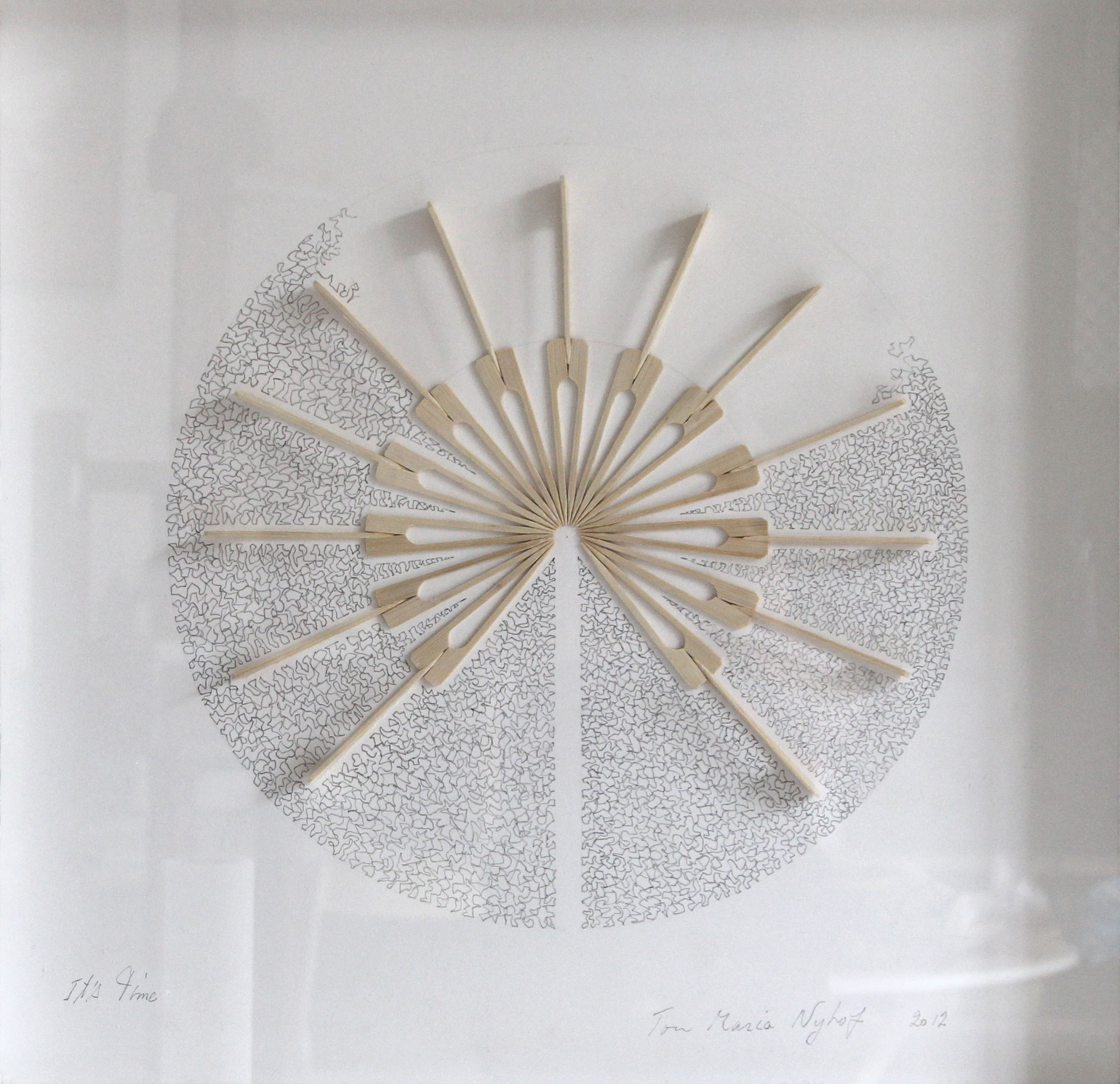 Ton Maria Nijhof laat in zijn werk zien dat dingen, mensen, gevoelens die ogenschijnlijk niets met elkaar te maken hebben, toch een samenhang vertonen. Nijhof combineert en componeert ritmes met structuren en figuratieve elementen tot een nieuw geheel. De fysieke verschijning van de dingen in relatie met abstracte elementen. Dit klinkt ingewikkeld maar is eigenlijk heel gewoon. Bv. Je zit met vrienden te genieten van een heerlijke maaltijd, Het gesprek gaat over de culinaire kwaliteiten van de kok, de politiek, de hypotheek op je vakantie huisje. En ineens denk je, zonder enige aanleiding, aan het leertje van de kraan dat hoognodig vervangen moet worden. Wat heeft het leertje van de kraan te maken met de culinaire kwaliteiten van de kok? Niets, helemaal niets. Maar toch kunnen ze tegelijk.