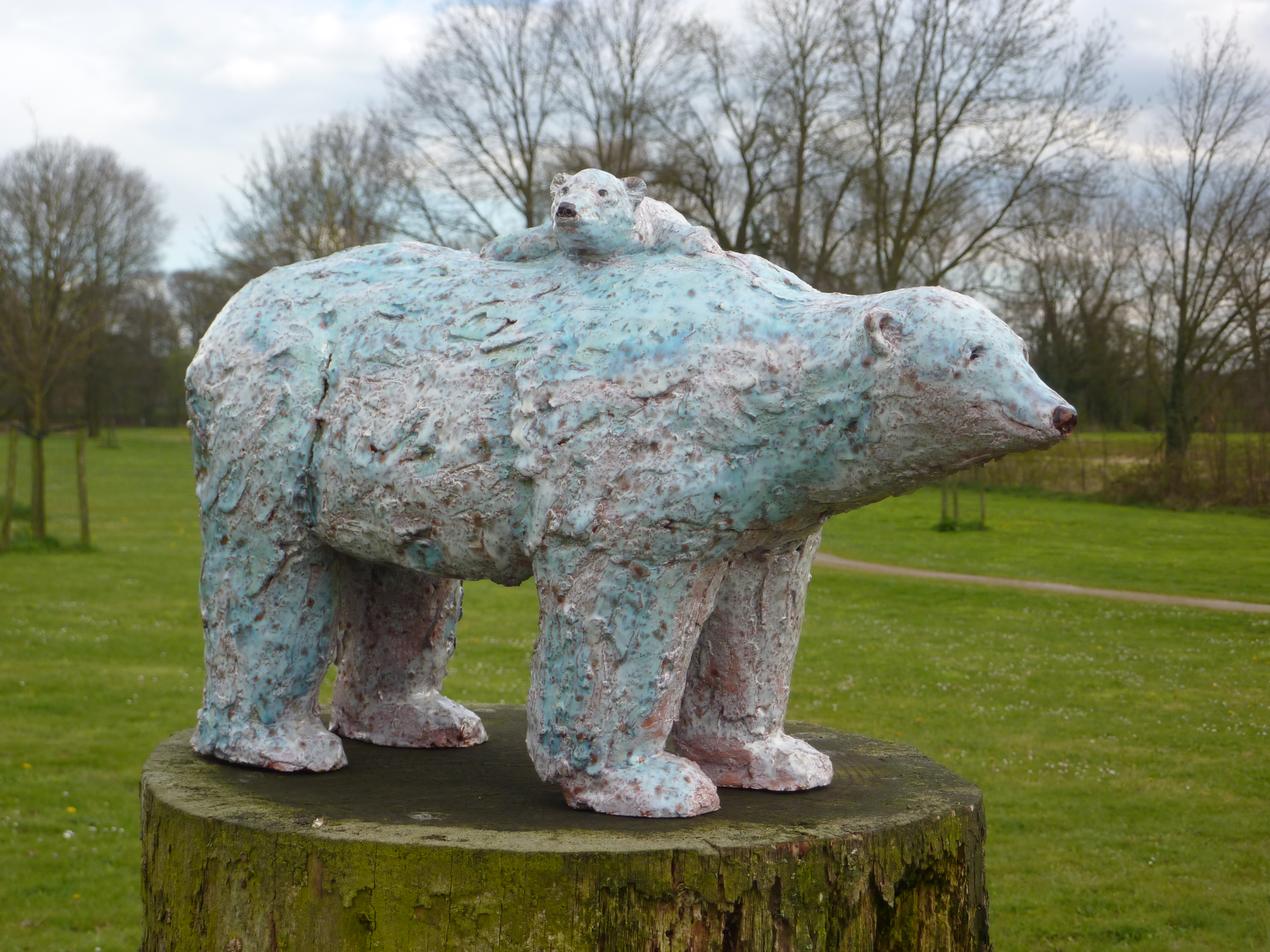 ijsbeer met jong, geglazuurd