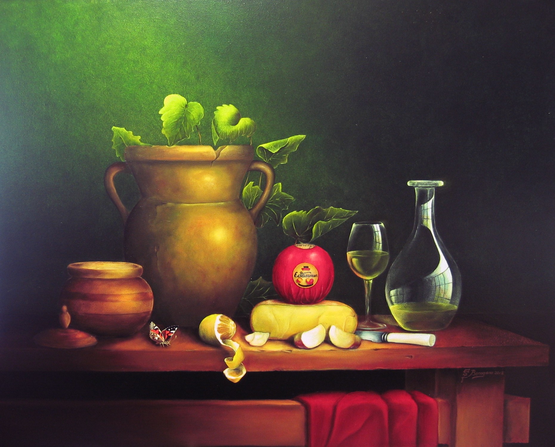 Mijn werk bestaat uit realistische stillevens met composities die een impressie weergeven uit het verleden, maar ook uit het huidige leven.