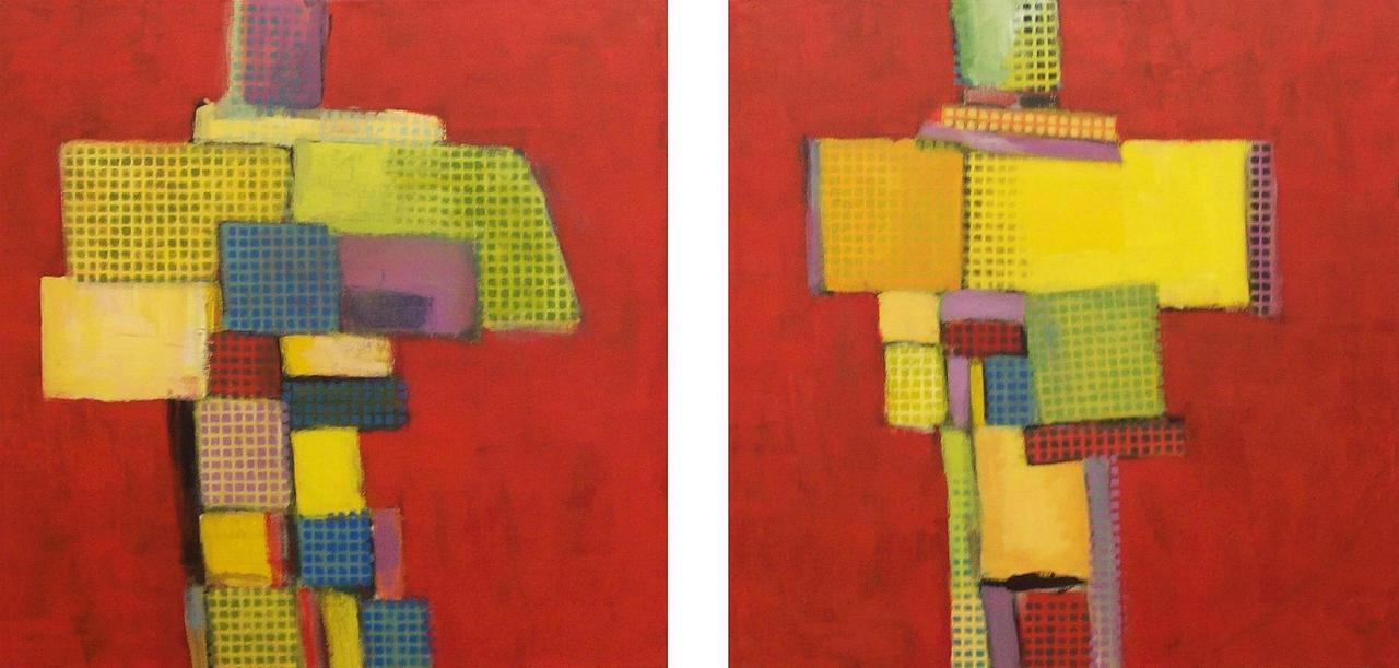 Geabstraheerd landschap samengesteld uit twee doekjes van 80x80 cm.