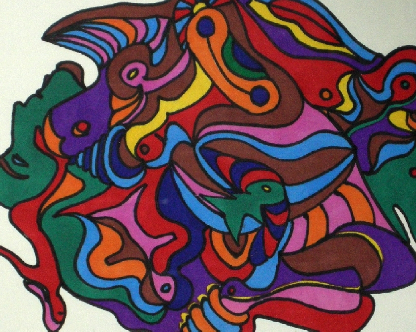 Tekening, abstract color. Stift op papier. a5