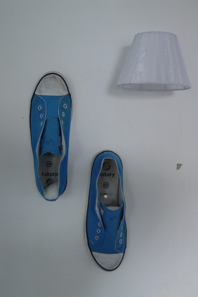 Schoenen, lampenkap en zout