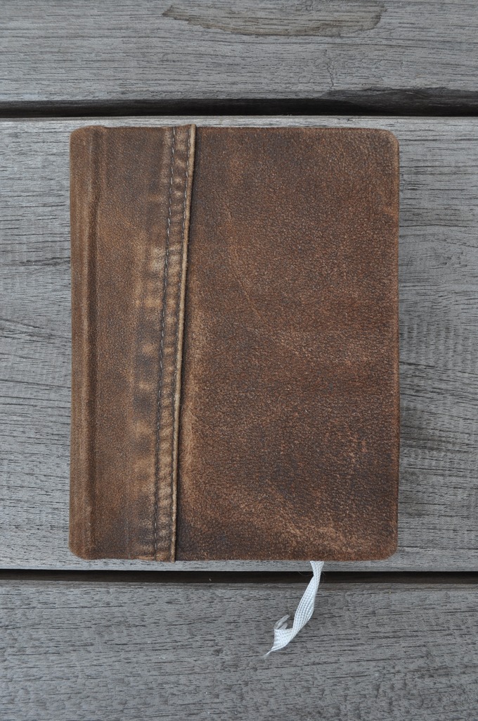Handgebonden boek met meerkleurig zwaar papier. Gebonden in delen van leren jas.