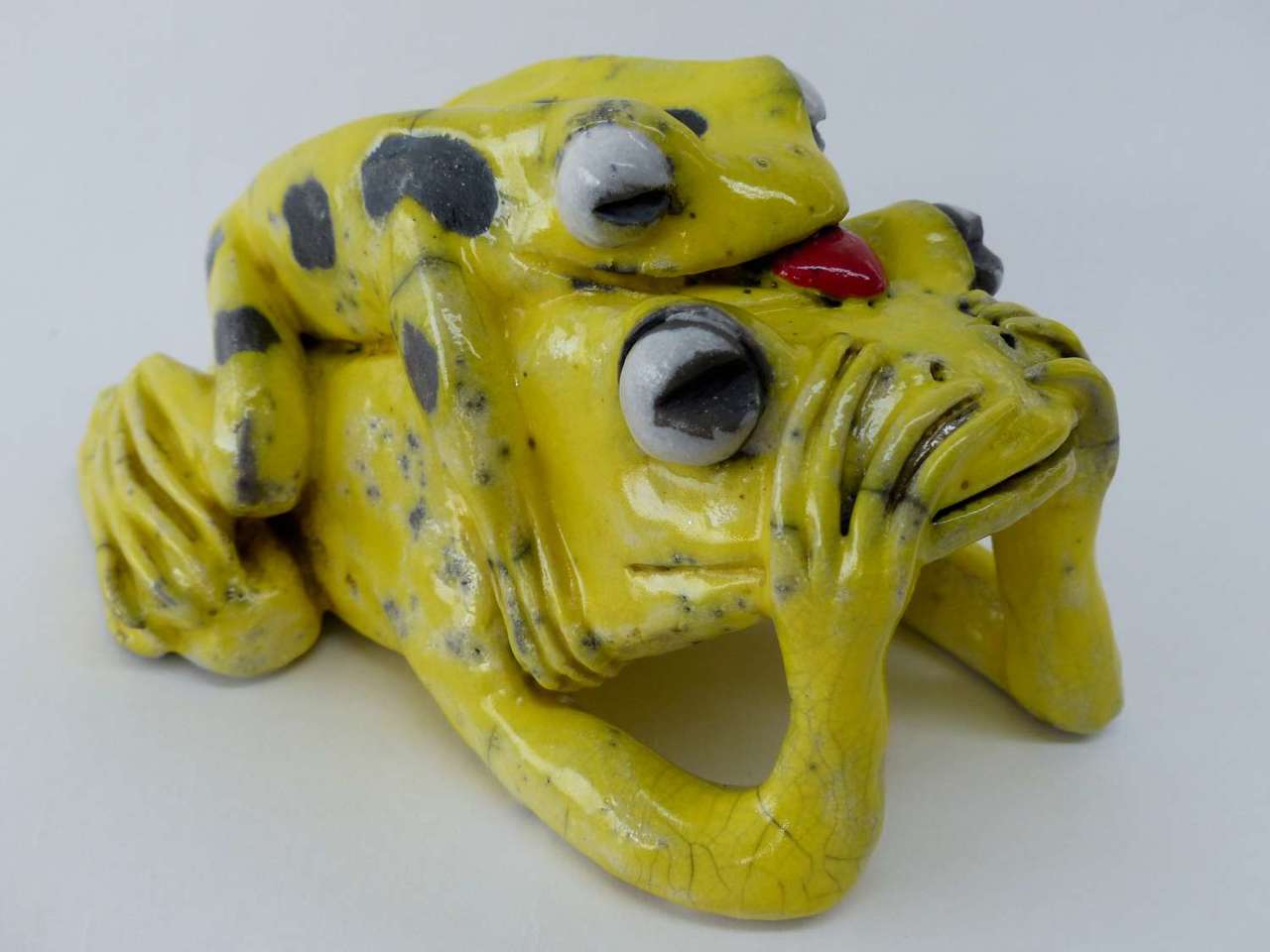 Stelletje gele kikkers, raku gestookt