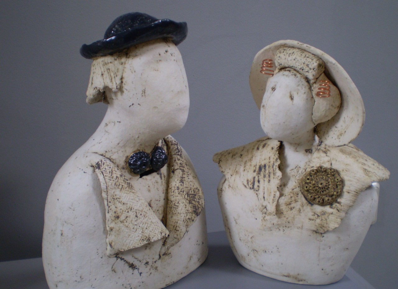 Zeeuwse boer en boerin....handgevormde keramiek, bewerkt met koperoxyde en glazuur.