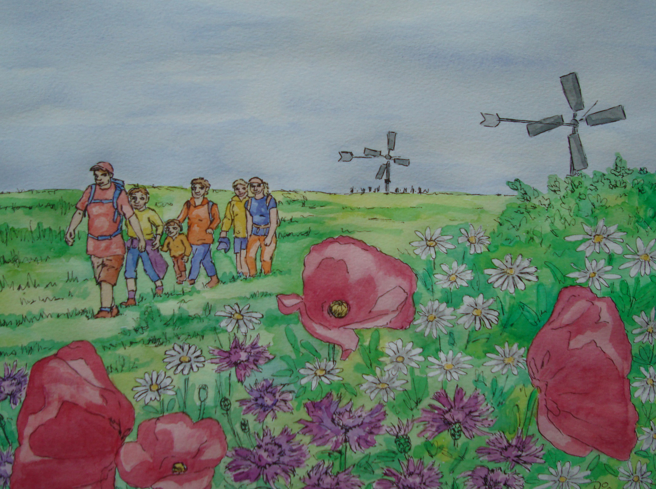 Aquarel Natuur Drawing Pen Watercolor Wandeling Nature Pentekening Oever Walk Lopen Shore Wandelaars Hiking Hikers