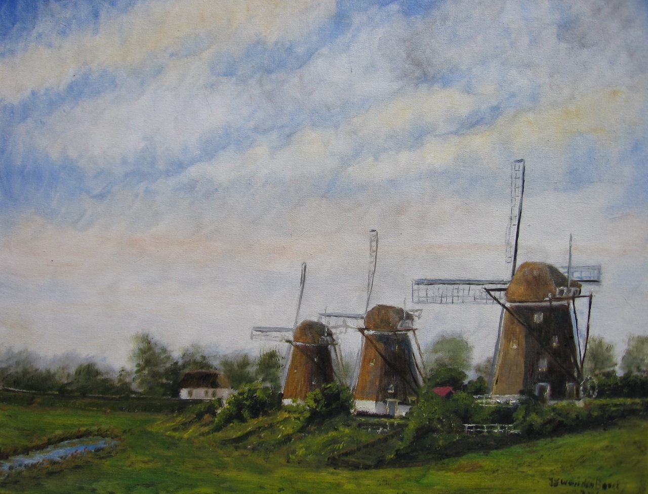 Driemolen Leidschendam Schilderij Olieverf Molens