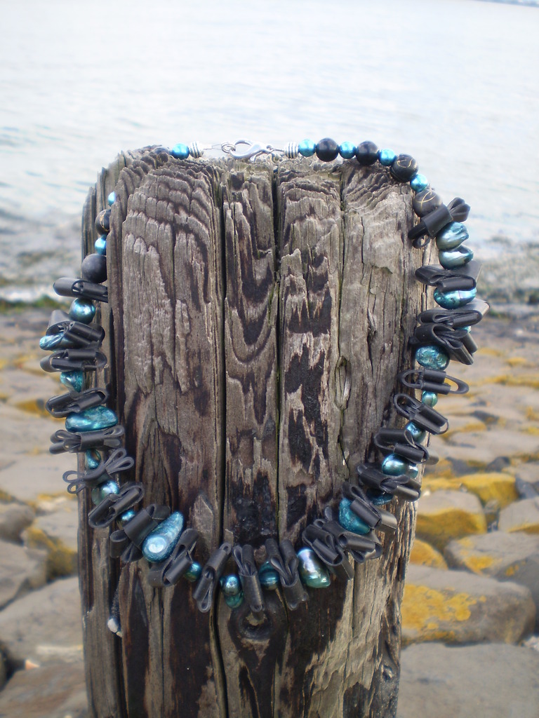 Rubber halsketting met kralen.