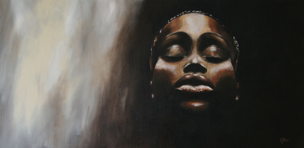 Negerin Ogen Dicht Bruin Intens Acryl Portret