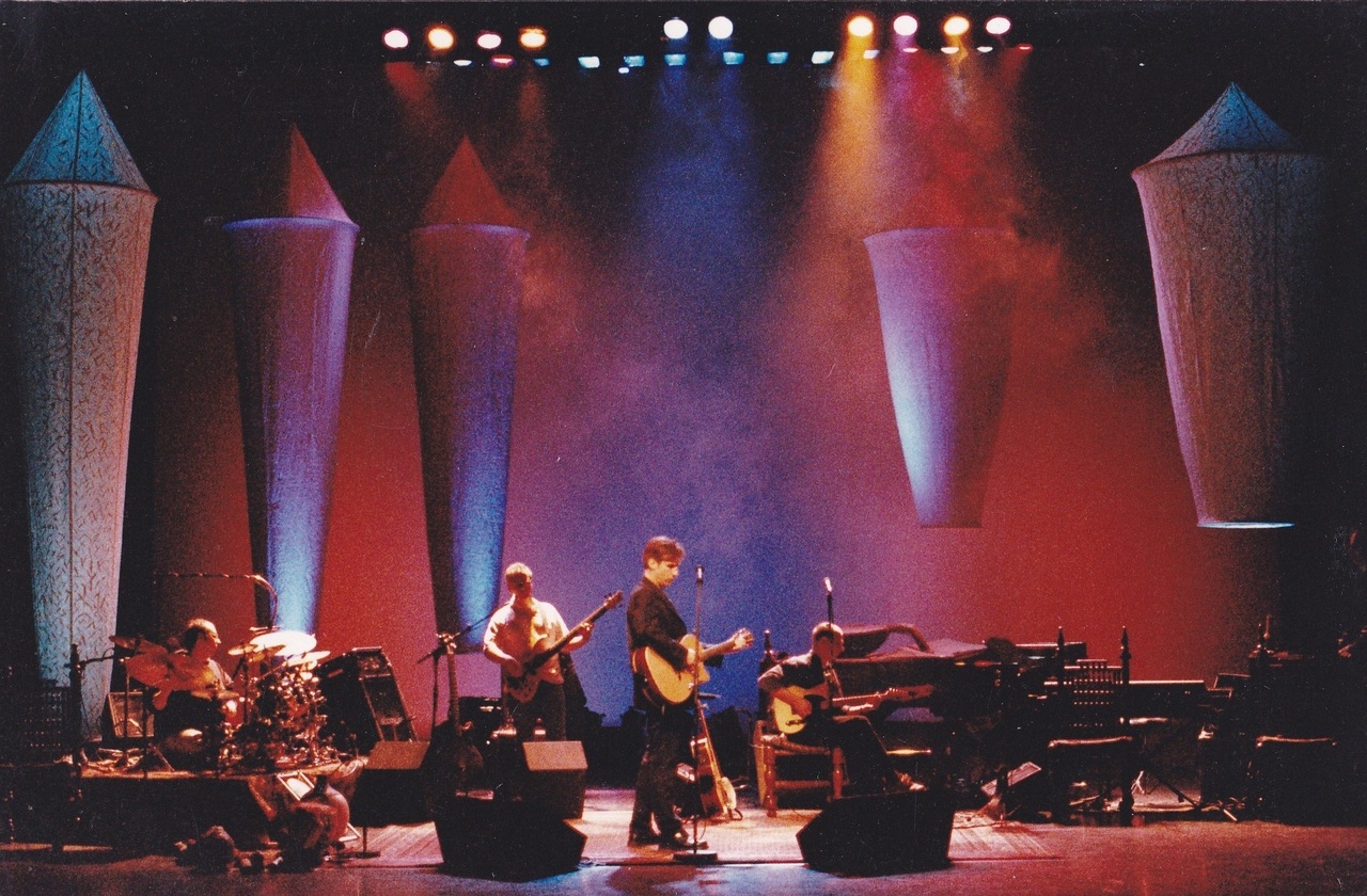 Decorstukken voor de tour 'Vaderland' van Frank Boeijen. Het zijn 5 grote lampionnen van afwijkend formaat, gemaakt van brandvertragende ongebleekte katoen. Beschilderd met een structuur. Voor deze tour heb ik ook de t-shirts en backstagepassen ontworpen en meegdacht in het lichtplan. Eigen ontwerp en fabricage. Gemaakt in opdracht van Frank Boeijen.