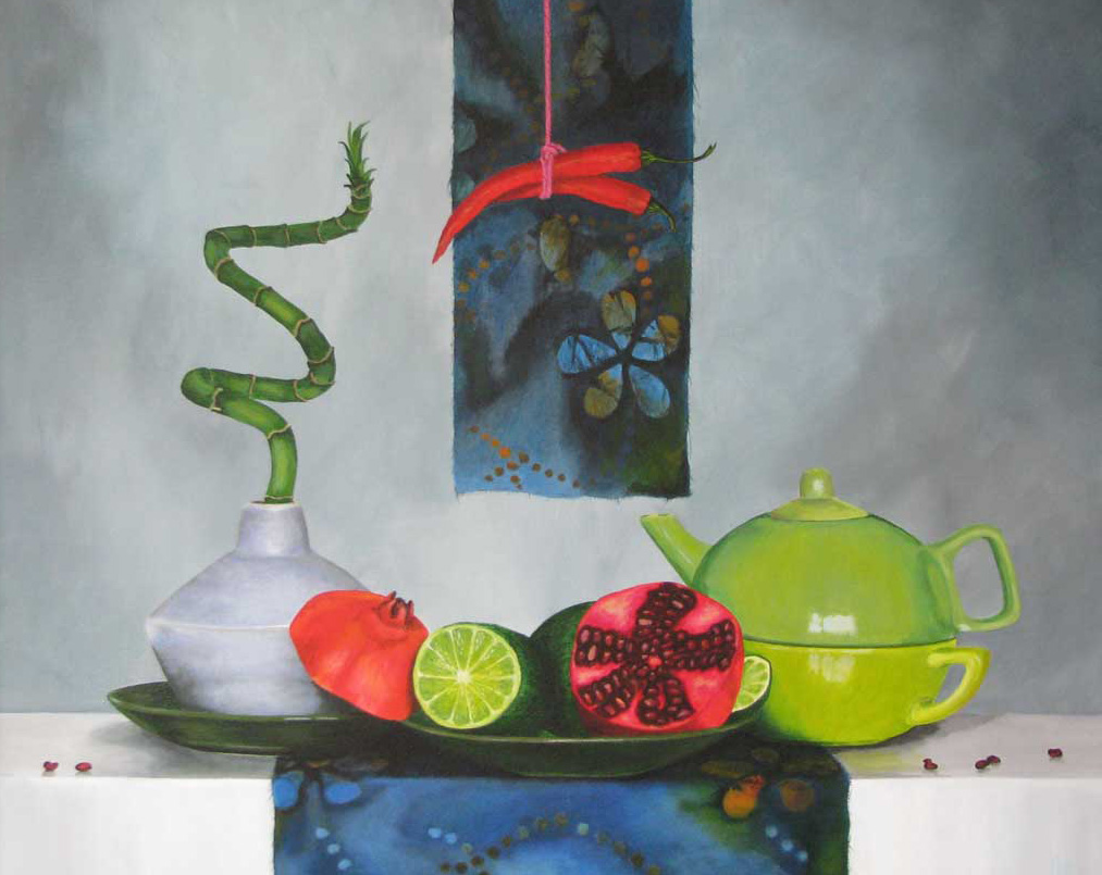 Acryl Realistisch Paneel Theepot Pepers Limoen